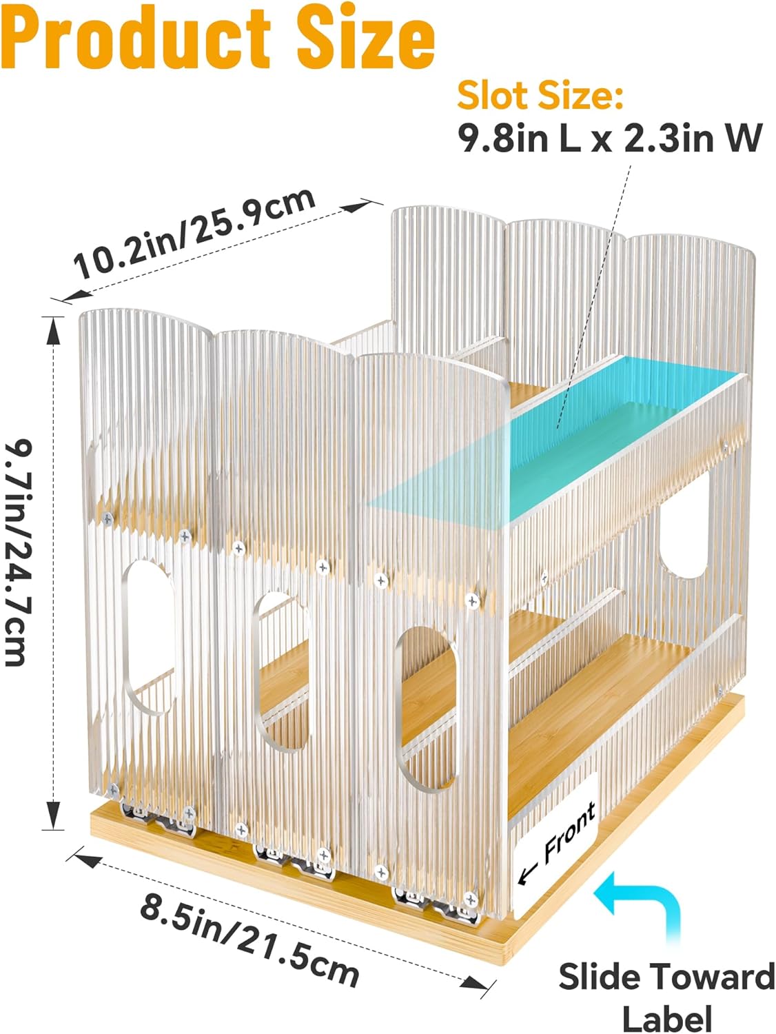 NiHome Bamboo Pull-Out Spice Rack Organizer for Cabinet, 3-Drawer Vertical Slide Out Seasoning Rack Storage Shelf for Kitchen Pantry, Bamboo Frame with Wave-Pattern Acrylic Divider (8.5” Wide, 2-Tier)
