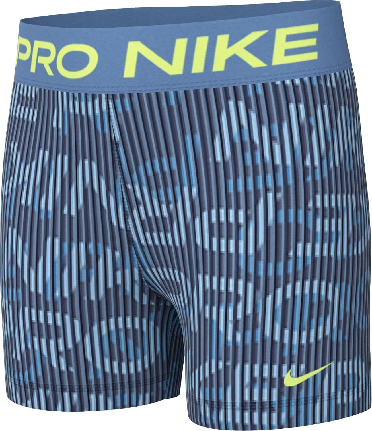 Comfortable Fit: These shorts fit snugly and smoothly, with a stretchy fabric and wide elastic waistband that stays in place during movement. They can be worn under skirts, dresses, or uniforms. Design: Featuring an all-over print and the iconic Swoosh logo, these shorts are made with Nike's Dri-FIT technology to keep you dry and comfortable. Details: The inseam measures 3 inches, and the shorts are machine washable