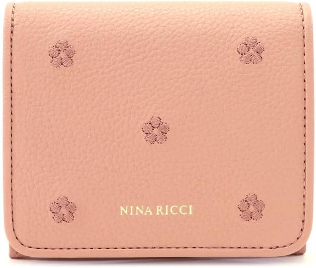 The wallet series features embroidered floral motifs on the surface that are often incorporated in dresses from the "Nina Rich" collection. The flowers are arranged in a natural grain cowhide leather with a thread color that is similar to the leather, giving it a simple yet casual cuteness. The gold base coin purse exudes a sense of luxury. The opening is large and makes it easy to insert and remove coins. The interior also has a card pocket with a gusset to keep your cards organized and highly functional.