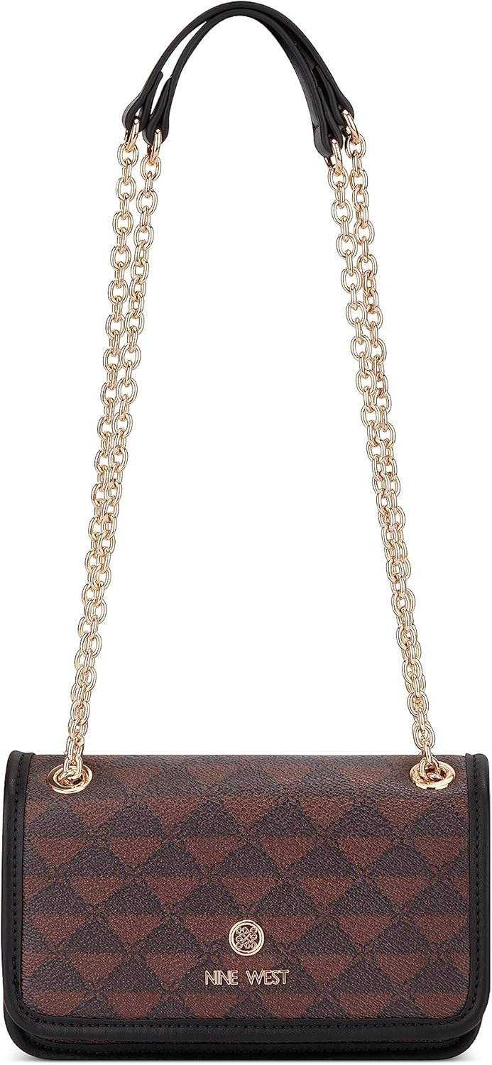 Nine West designer Tristian mini convertible crossbody designed in smooth chic geo logo with hardware details and exterior branding. Luxe chain straps convert from crossbody to shoulder strap for hands free style.