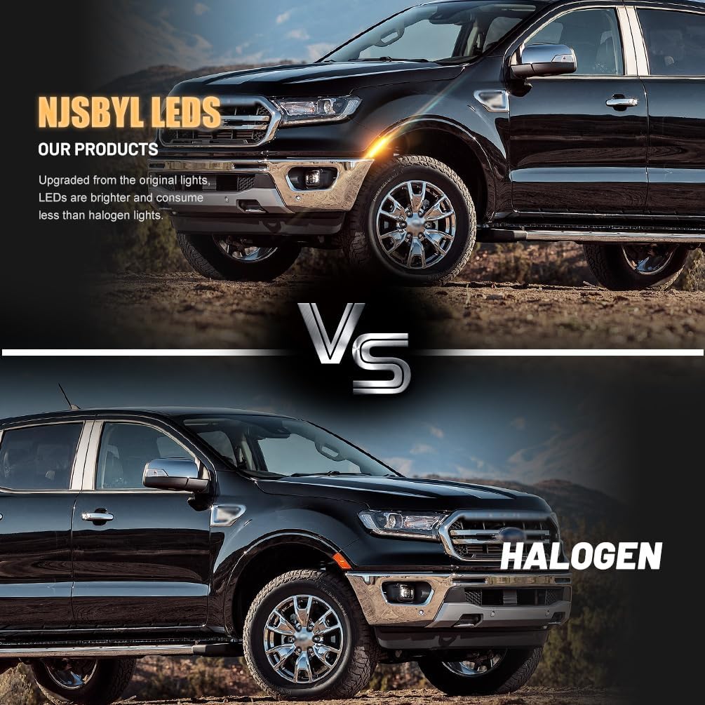 Product Name: NJSBYL Amber LED Side Marker Light Assemblies for 2019-2023 F-ord Ranger Lariat XL XLT Front Bumper Reflector Markers Lights Clear Lens Driving Singal Running Lamps OEM# KB3Z13A565A BK3Z13A565B Fitment for these Ranger side marker lights: 1. Compatible with 2023 F-ord Ranger 2. Compatible with 2022 F-ord Ranger 3. Compatible with 2021 F-ord Ranger 4. Compatible with 2020 F-ord Ranger 5. Compatible with 2019 F-ord Ranger replaces OEM parts # KB3Z13A565A, BK3Z13A565B, C2AZ13466C Features about these Ranger LED Side Marker Signal Light Assembly: - Style of the Lamps Housing: Clear Lens Style Lamps Housing! - Waterproof grade: Ip67 waterproof design. - Service life: Up to 50,000 hours - Amber LED side marker lights. - 300% brighter than original lights, super bright output, low power consumption. - Play and plug, direct fit, no modification needed, no additional resistors or relay required, easy to install. - The lens of this NJSBYL ranger side marker lights is made of ABS/PC materials (anti-scratch, waterproof), no faded with long-time exposure. Package Includes: 2 x LED Side Marker Running Lights Assemblies Please attention: 1. Manual measuring, please allow 1 ~ 3mm error, thank you. 2. Due to the difference between different monitors, the picture may not reflect the actual color of the item. We guarantee the style is the same as shown in the picture.