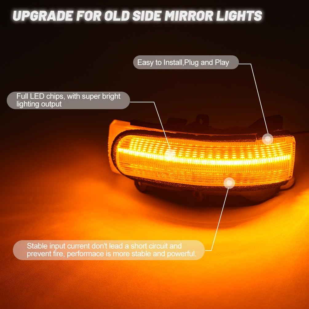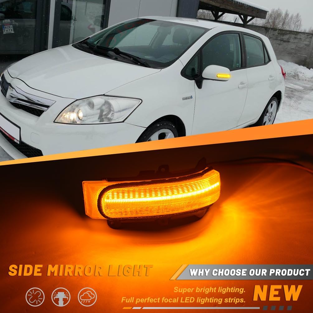 Product Name: Sequential Amber LED Mirror Turn Signal Blinker Lights for 2011-2016 Scion tC, 2008-2015 Scion xB Clear Lens Side Mirrors Marker Indicator Running Lamps OEM# 8173022180 8174022180 Fitment for this Scion side mirror led lights: 1. Compatible with 2011 2012 2013 2014 2015 2016 Scion tC 2. Compatible with 2008 2009 2010 2011 2012 2013 2014 2015 Scion xB replaces OEM part # 8173022180 8174022180 Features about these LED Side Mirror Signal Light Assembly forScion tC xB ... : - Waterproof grade: Ip67 waterproof design. - Service life: Up to 50,000 hours - Side Mirror Amber LED Turn Signal Lighting - 300% brighter than original lights, super bright output, low power consumption. - Play and plug, direct fit, no modification needed, no additional resistors or relay required, easy to install. - These side mirror lights lens is made of ABS/PC materials (anti-scratch, waterproof), no faded with long-time exposure. Package Includes: 2 X Side Mirror Light Assemblies Please attention: 1. Manual measuring, please allow 1 ~ 3mm error, thank you. 2. Due to the difference between different monitors, the picture may not reflect the actual color of the item. We guarantee the style is the same as shown in the picture.