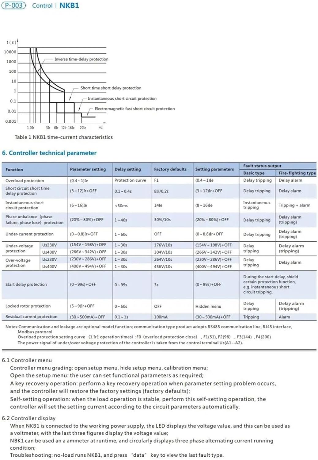 SwitchesAC current frequency of 50 Hz or 60Hz rated operational voltage up to 690V, rated operational current from 1A to 125A, controller setting current from 0.4A to 125A, control motor power from 0.12kW to 55kW.