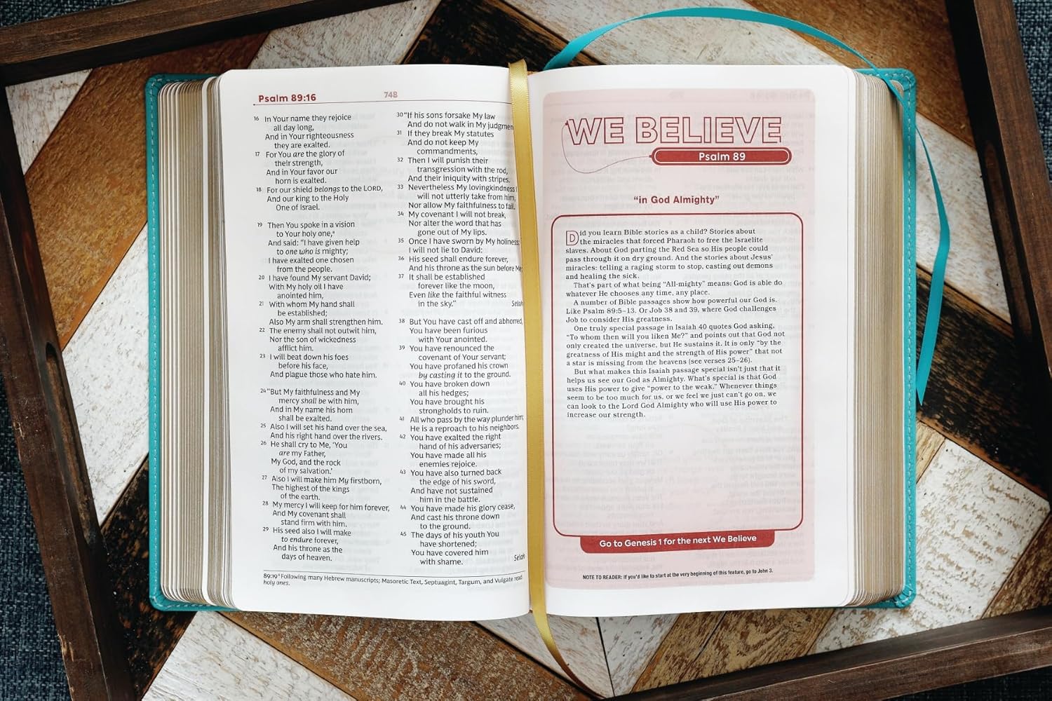 The bestselling NKJV Teen Study Bible helps teens apply God’s Word to the issues they face every day!Full of study features to help today's teen learn more about God, the Bible, and how God's Word relates to their lives, the NKJV Teen Study Bible will help them keep in step with all God has done, is doing, and will do in the world. Teens will discover the eternal truths of God's Word and how to apply them to the issues they face every day as they read biblical advice about dealing with everything from friends, family, and school to problems such as bullying and depression. As teens navigate their hectic and sometimes stressful lives, this study Bible will help them to deepen and understand their faith while reassuring them that God is always with them, and they are never alone.Now available in the exclusive NKJV Comfort Print® typeface, the NKJV Teen Study Bible is as easy to read as it is to understand. Expertly designed specifically to be used for the New King James Version (NKJV) text, Comfort Print offers an easier reading experience that complements the translation.Features:Complete text of the New King James Version (NKJV)“We Believe” features unpack the Apostles’ Creed to reveal the biblical foundation of faith“Panorama” features keep the big picture of each book of the Bible in viewTopical indexes help with in-depth Bible studyBook introductions provide an overview for each book of the BibleBiblical advice about friends, family, school, and other issuesImportant Bible verses to memorizeQ and As test your Bible knowledgeProfiles of people in the BiblePresentation page for gift givingTwo-color page design8-page full-color map sectionSilver-stained page edgesTwo satin ribbon markersLeathersoft™ cover lies flat when openExclusive NKJV Comfort Print typefacePrint size: 9.5 Read more