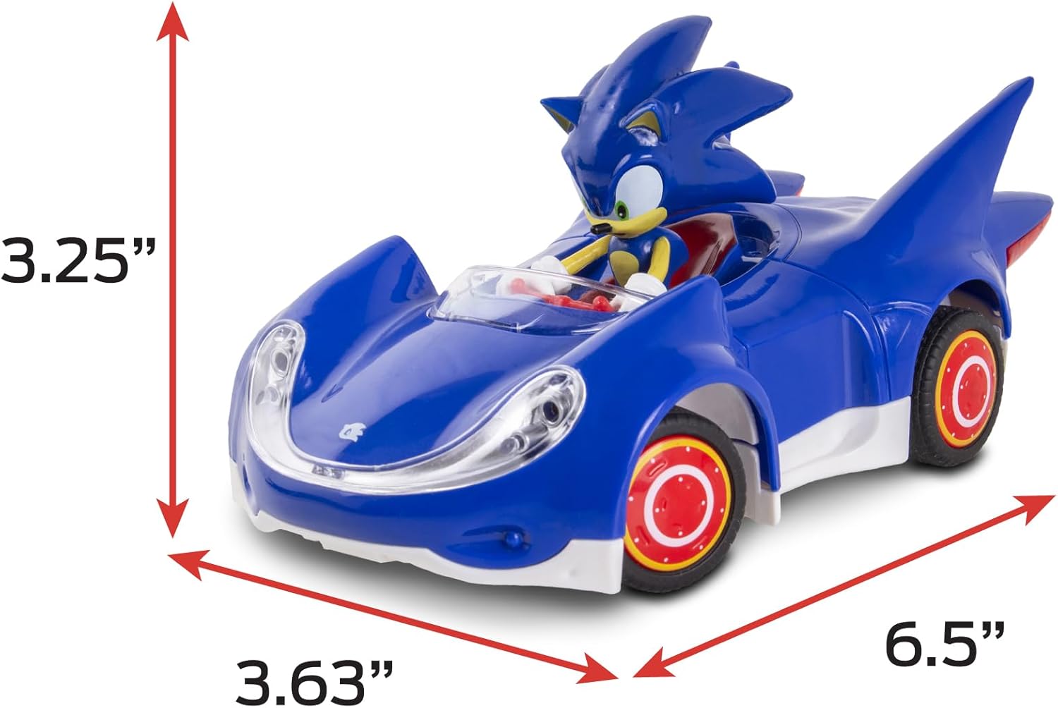688: 1/28 Scale 2.4GHz RC Sonic and Silver Two-pack is better than one-pack! Sonic & Sega All Stars Racing revolutionized Sonic racing games. Sonic's Speed Star race car was famously built by Tails, and it remains one of the most iconic vehicles from any Sonic game ever. Who better to battle Sonic than Silver the Hedgehog! This essential character to the Sonic multiverse was introduced in the 2006 “Sonic The Hedgehog” game. Silver is 200 years from the future. His Lightron vehicle from the Team Sonic Racing game is one of the most memorable vehicles from any Sonic game ever made. These highly detailed, 1/28 scale radio controlled powered replicas utilize a 2.4GHz radio frequency, so you can race up to 16 at the same time with some incredible range! They pack a lot of speed for their small size. Requires 4AA and 6AAA batteries - not included. • FULL FUNCTION RADIO CONTROL: Instantly command Sonic and Silver forwards, backwards, left and right. • POWERFUL 2.4 GHz FREQUENCY: Allows 16 players to race at the same time. Range of transmitter can be up to 150 feet away! • DETAILED FIGURE: Meticulously sculpted and beautifully detailed characters/vehicles based directly on the games. • 1:28 SCALE: Compact 6.5” size makes it easy to store and to display. • AGILE AND POWERFUL: Rubber tires and adjustable front wheel alignment for better control. Great traction and powerful motor. • OFFICIALLY LICENSED: Sonic the Hedgehog is part of the NKOK RC collection of official licensed Sega remote control products. Collect them all! (each sold separately).