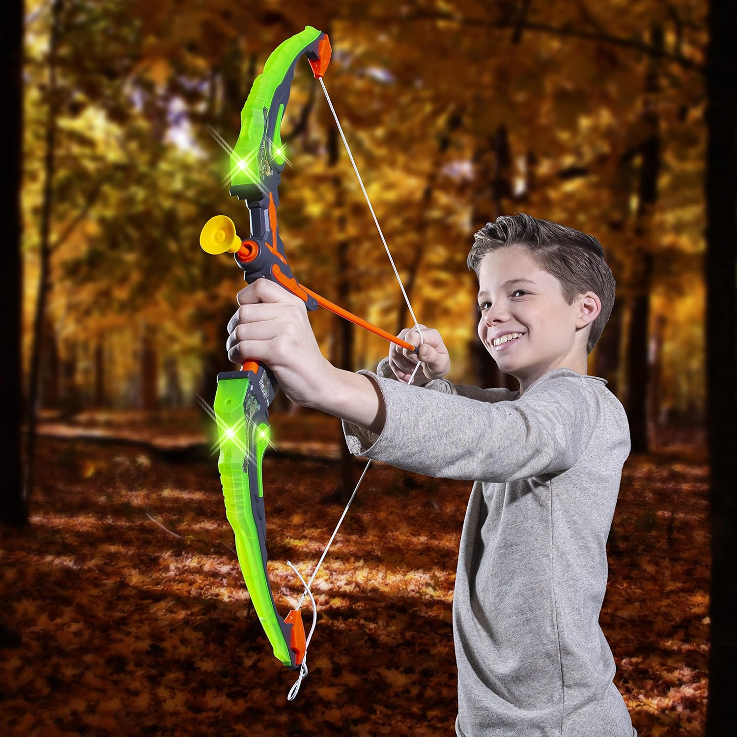 Realtree's very first light up archery set is advanced and fun! With a real bow design that lights up and flashes patterns, the PVC tipped suction arrows can be propelled more than 40 feet! It includes 3 arrows and even a target to practice on!