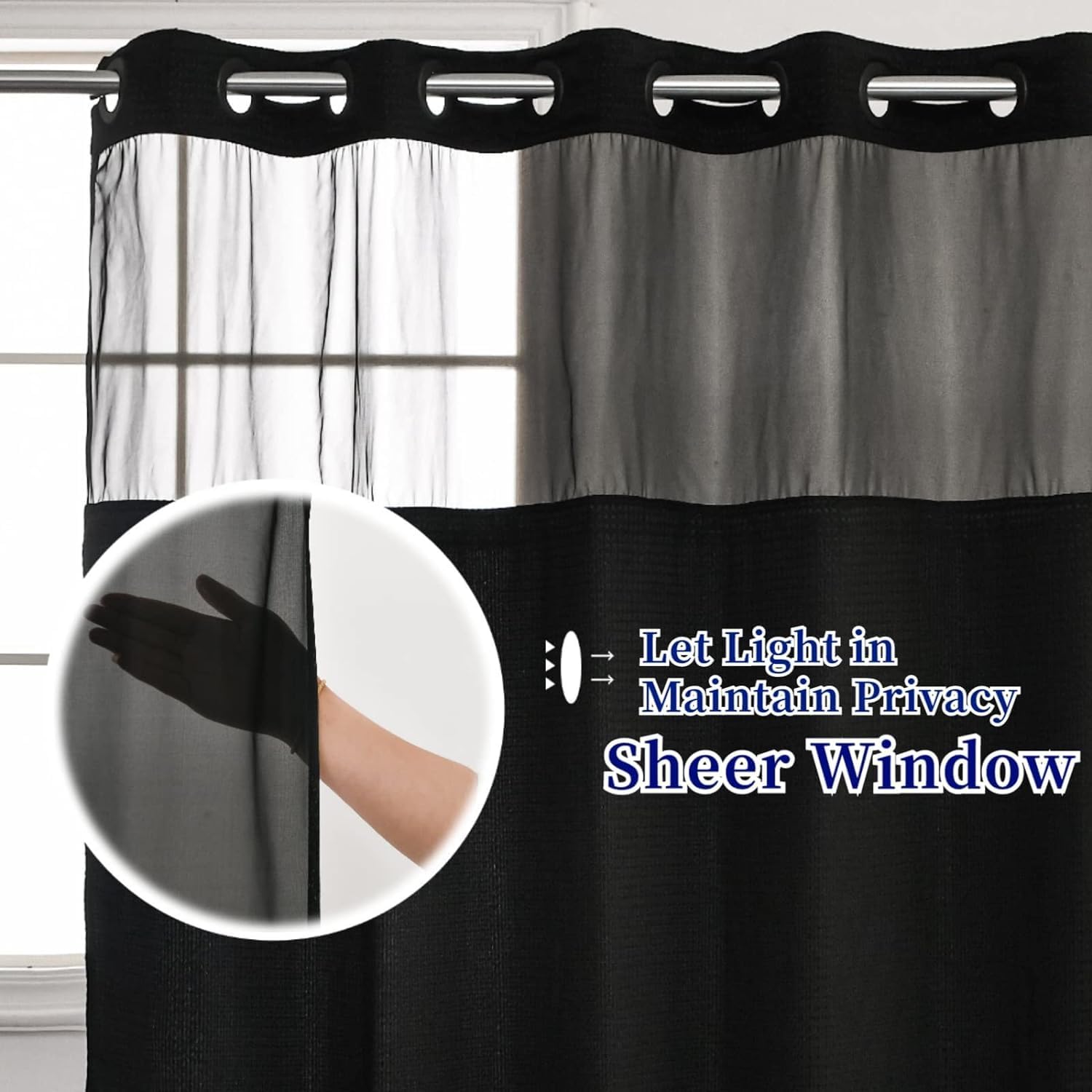 No Hooks Needed Waffle Weave Shower Curtain with Snap in Fabric Liner,Hotel Style Shower Curtain with Mesh Top Window