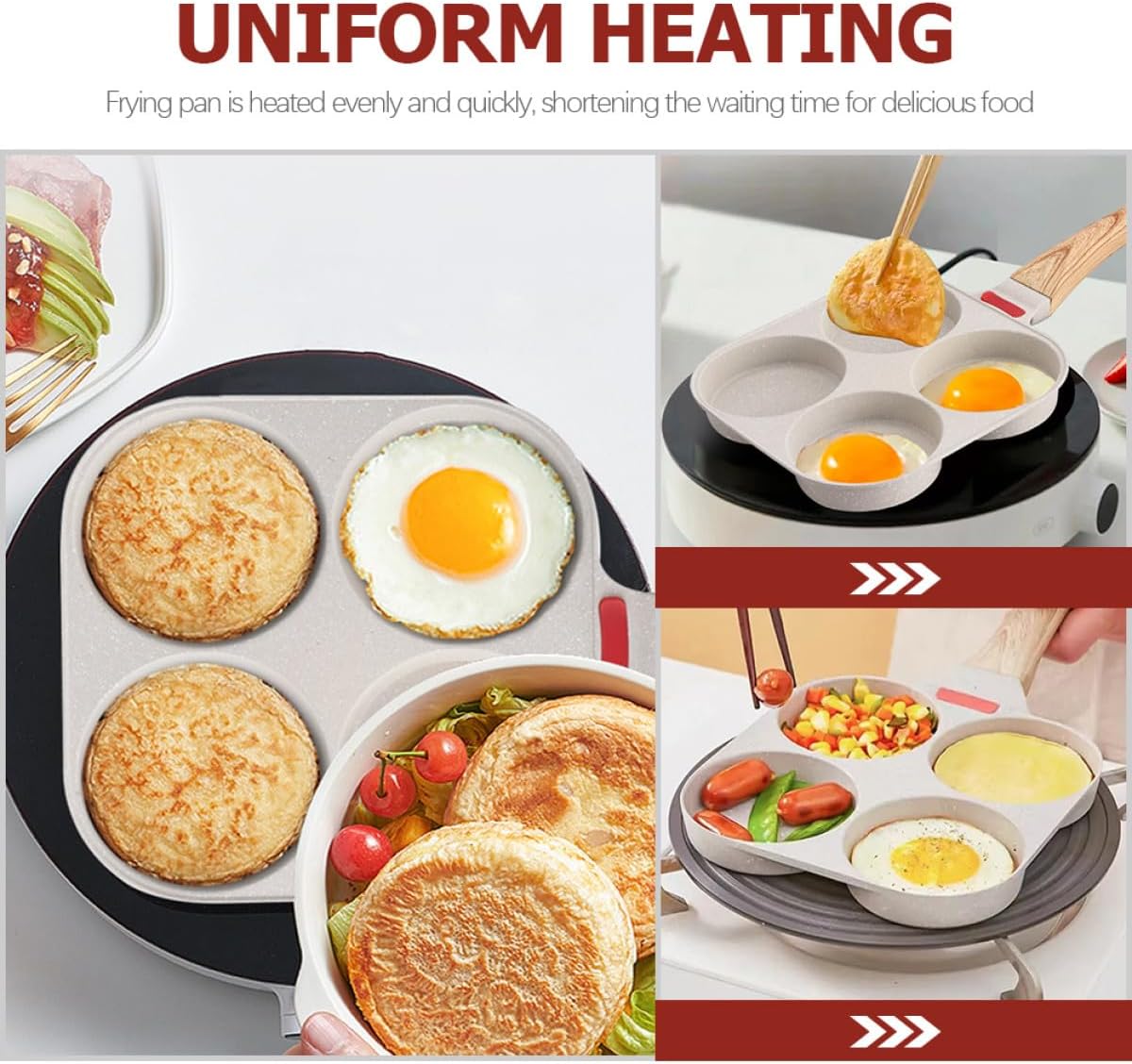 Package Include 1 x Frying Pan Features -Product Info:Four-hole fried egg pan -Size:37.00X18.20X2.30cm/14.54X7.15X0.90in -Material:Medical stone -Color:Beige -Anti-scalding handle, it is comfortable and non-stick to hold, keeping your safety breakfast egg cooking pan. -Perfectly round eggs, hamburger sliders, mini pancakes, crepe, Jeon and more. The parts are tightly connected, the rivets are tightly connected, and it is not easy to fall off and damage egg fryer -The egg frying pan is made of for use. These multiple grooves nonstick frying pan can fry four ! -It's easy to clean, convenient to use, easy to fry eggs. A frying pan for your home pan nonstick. -Multifunctional use, fried eggs, , egg , etc., bringing convenience to your daily life egg hamburger pot.Goods Descriptionmultifunctional non-stick pan Great for frying eggs, egg , etc.egg hamburger pot Our Non-stick Frying Pan is to fit your everyday cooking needs.egg maker Nonstick coating offers easy release performance and effortless cleanup.Multi-Function Frying Pan Wonderful heat distribution that gives extra efficient performance on cooking