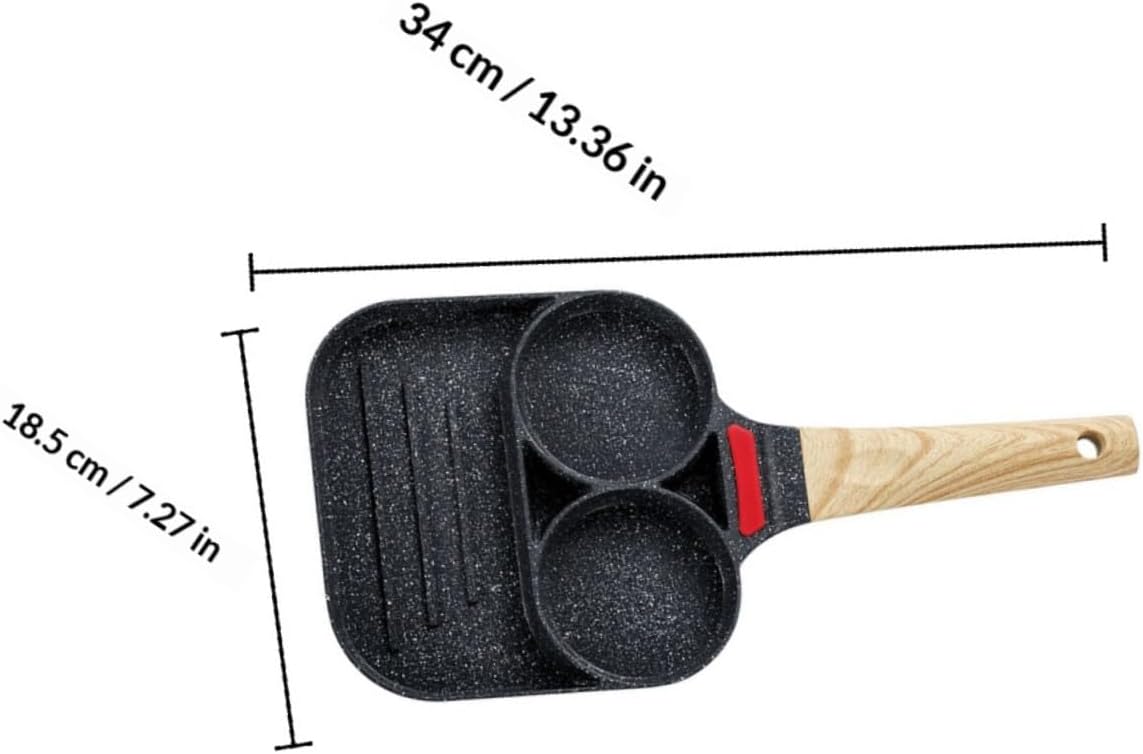 Package Include 1 x Egg Frying Pan Characteristics - Color: Black - Size: About 34.00X18.50X2.50cm/13.36X7.27X0.98in -Product Info:Fried egg burger pot - Material: Aluminum, Wood - Divided compartments design, suitable for making omelets, steak, sandwiches, and pancakes, etc nonstick pan. - A temperature- silicone strip on the pan, you can confirm the cooking steps according to its color change. - Non-stick, very easy to clean, just use a sponge or cloth to remove oil stains easily Pancake Frying Pan. - The handle is made of wood, which has of heat insulation and protects you from being burnt Breakfast Skillet Pan. - The frying pan is suitable for all types of hobs, it’s compatible with both gas stoves and induction cookers frying pan nonstick.Goods InformationPancake Pot The non-slip comfort grip is designed for manipulating ease during cooking.Breakfast Frying Pan This item is made of , very practical in use, giving you a .Breakfast Skillet Pan The frying pan is of every kitchen