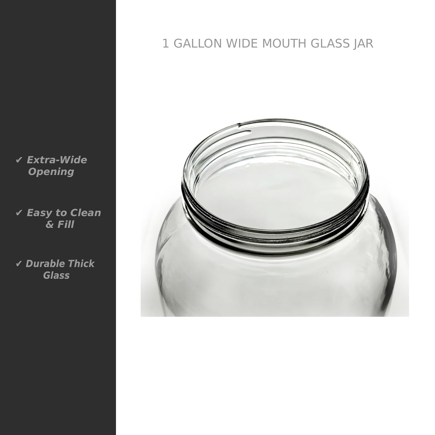 1 Gallon Glass Jar with Black Plastic Lid - Perfect for an assortment of purposes. Great for bulk canning, fermenting, dry storage, cookies, candy and terrariums. Often used for pickles, pickled eggs, kombucha, and various bulk storage items. Glass to avoid absorption of flavors and leaching of chemicals - USDA certified food grade. Made in the USA! To promote a positive and satisfying customer experience, this product is covered by North Mountain Supply's 30 day hassle-free replacement program, in the event the product is damaged or defective.