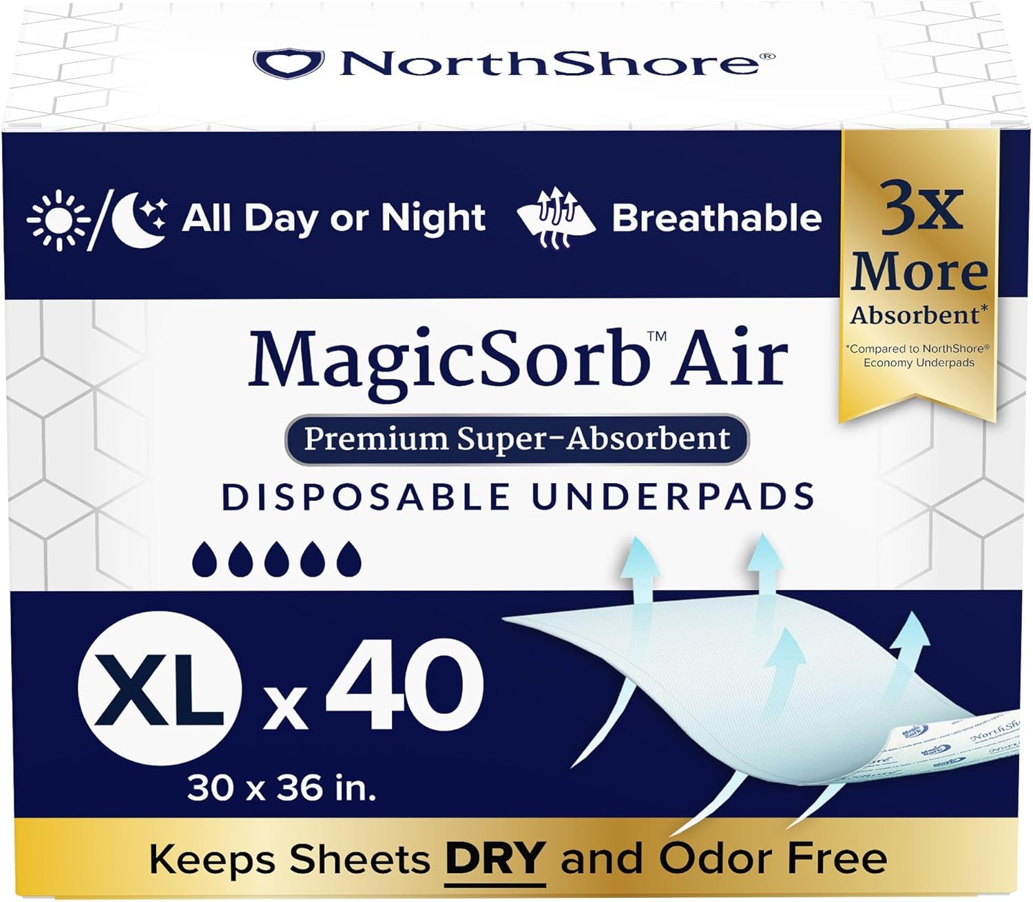 NorthShore MagicSorb Air, 30 x 36, 60 oz., Super-Absorbent Disposable Underpads, X-Large, Pack/10