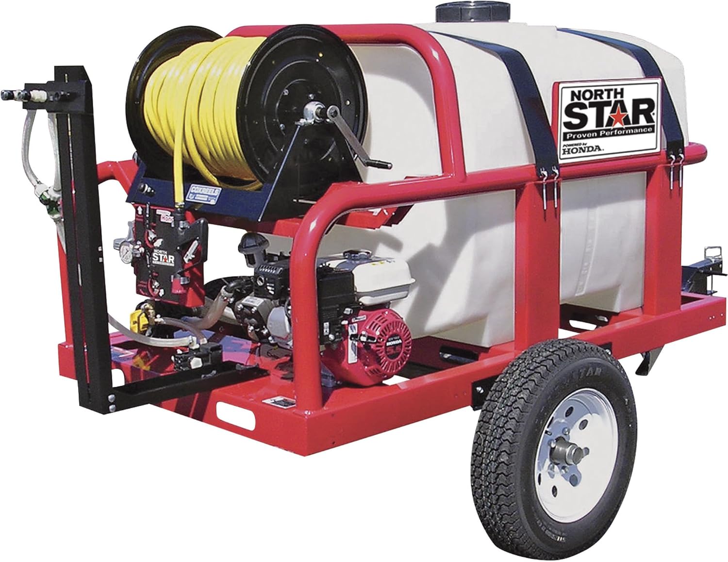 NorthStar Trailer Kit for 200-Gal. Skid Sprayer converts your NorthStar 200-Gal. Skid Sprayer (Item# 268170) into a tow-behind sprayer. Features 13in. wheels, torsion axle suspension, A-frame tongue, swing-away jack and powder-coat finish. Tows with ATV, gator or tractor. Add high-speed trailer upgrade kit, Item# 268176, for highway towing.