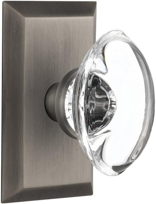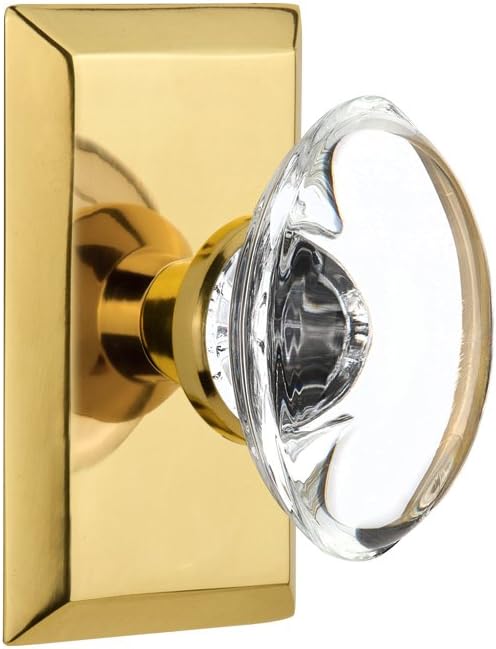 The studio plate coordinates well with any architectural style, its shorter length is ideal for bedroom or bath but can be used in any room. Add our oval clear crystal door knob, with its clean oval shape and smooth outward-curve, and you have the perfect accompaniment for period, rustic and Arts & Crafts style homes. All Nostalgic Warehouse door knobs are mounted on a solid (not plated) forged brass base for durability and beauty.