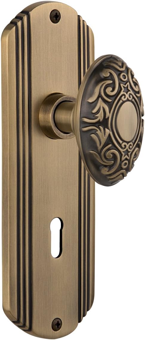The Deco plate brings to mind old hollywood, jazz, and the great gatsby, all of which inspire a modern twist on great classics from the past. Combine this with our Victorian door knob for a extraordinary look fit for royalty. All Nostalgic Warehouse door knobs are mounted on a solid (not plated) forged brass base for durability and beauty.