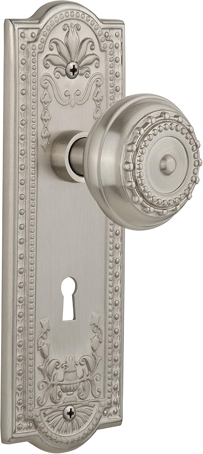 The meadows plate, with its intricate beaded detailing and botanical flourishes, creates an inspired design theme. Add our meadows door knob, with its captivating design, for a stylish and sleek look. All Nostalgic Warehouse door knobs are mounted on a solid (not plated) forged brass base for durability and beauty.