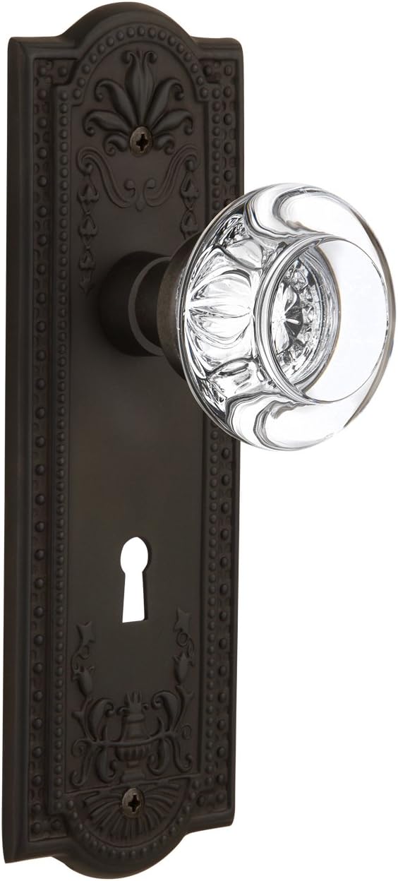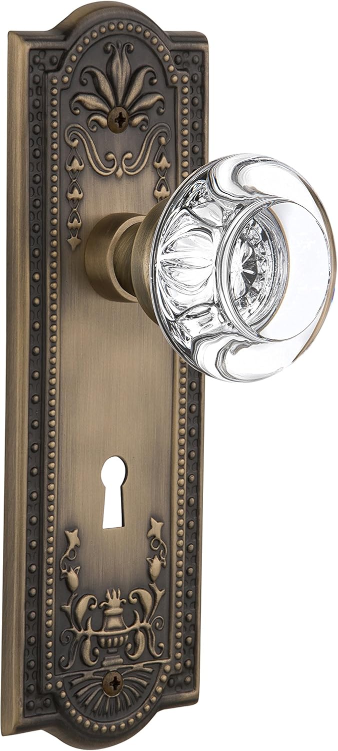 The meadows plate, with its intricate beaded detailing and botanical flourishes, creates an inspired design theme. Adding our round clear crystal door knob, which features a circular shape that magnifies the beautiful facets underneath, only serves to bring the past alive. All Nostalgic Warehouse door knobs are mounted on a solid (not plated) forged brass base for durability and beauty.