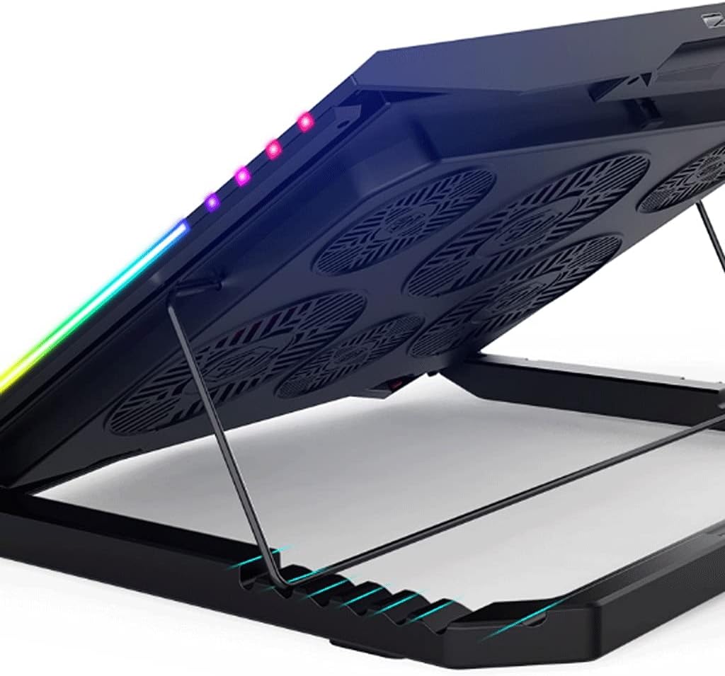: notebook radiatorProduct model: K7Applicable models: suitable for ultrabooks, notebooksCooling method: fanFan configuration: 6Line length: 0.6 (m)material: plasticInterface power supply: Product size: about 435 * 350 * 35mmProduct weight: 1.25KGFan size: 120 * 120 * 20mm (3PCS)Fan size: 70 * 70 * 15mm (3PCS)Speed mode: key touch / dial speed regulationIntegrated Dust Filtration Extends Laptop Lifespan: This cooler fan features a high-density, removable dust filter that effectively protects the internal fans of laptops. It captures hair and debris, them from entering the vents, thus solving the common "pressure cooker" dust buildup problem, significantly extending the lifespan of your expensive gaming PC and reducing costly professional cleaningIntuitive Touch-Mute Button adjusts RGB lighting with a single finger, minimizing distractions. Configured memory function, the laptop cooler RGB eliminates repeated selections and brings itself alive when power
