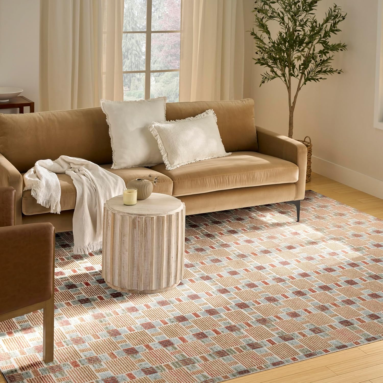 Invite clean, understated elegance to your décor with the Nordic Collection. These abstract and geometric rugs draw inspiration from the principles of Scandinavian design to bring you simple, yet impactful looks that help create a more serene atmosphere. Each style is finished with a subtle sheen and high-low dimensional pile that adds visual appeal without overwhelming your space. Choose from a variety of sizes to create a coordinated look between rooms – from runners for the kitchen and bathroom to large 8x10 rugs for the living room. Bring a unique touch of style to your space with this modern blue and rust geometric rug from the Nordic Collection. The clean, structured design brings balance and harmony to your space, while the high-low pile and soft texture add an inviting touch. This versatile rug is made with a low-profile construction that’s easy to clean.