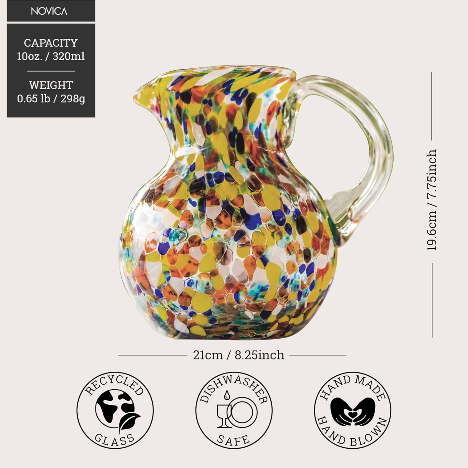 | Model Name | Novica Artisan Crafted Multicolor Hand Blown Recycled Glass Pitcher From Mexico 'Confetti' (71 Oz) |