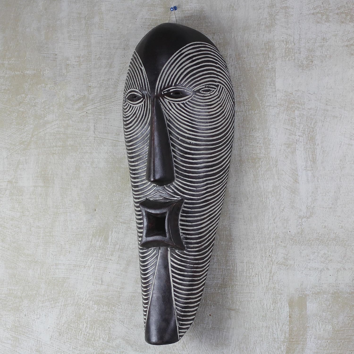 Ghanaian artisan Salihu Ibrahim creates a jovial expression with this beautiful African mask. Carved from sese wood, it depicts a smiling man with intricately placed details. The carving method used requires much dedication over a period of several weeks.