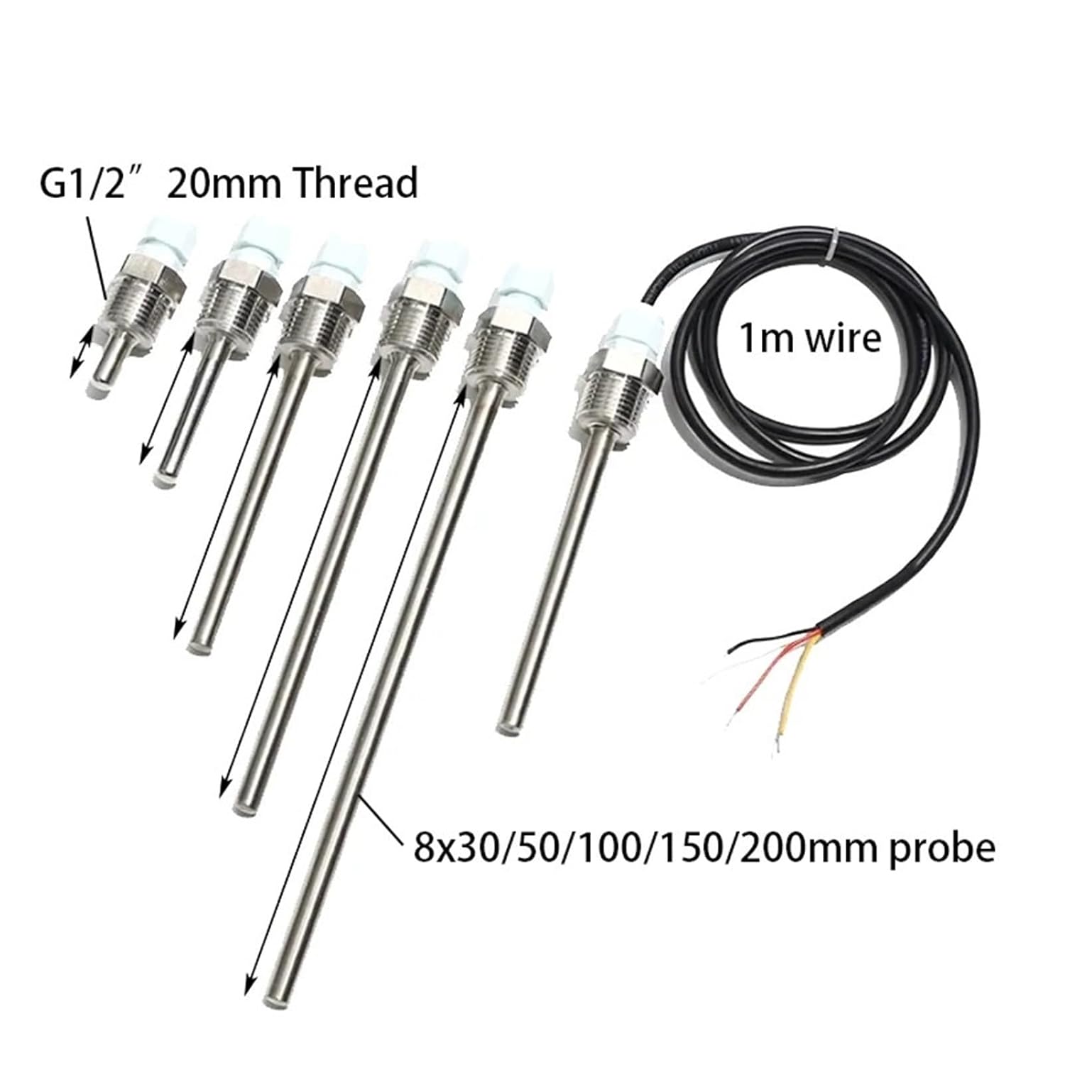 NTC Temperature Sensor Thermocouple 10K G1/2" 20MM Thread 1M Wire Easuring Probe 30/50/100/150mm 1Pcs(10K 8x150mm Probe)