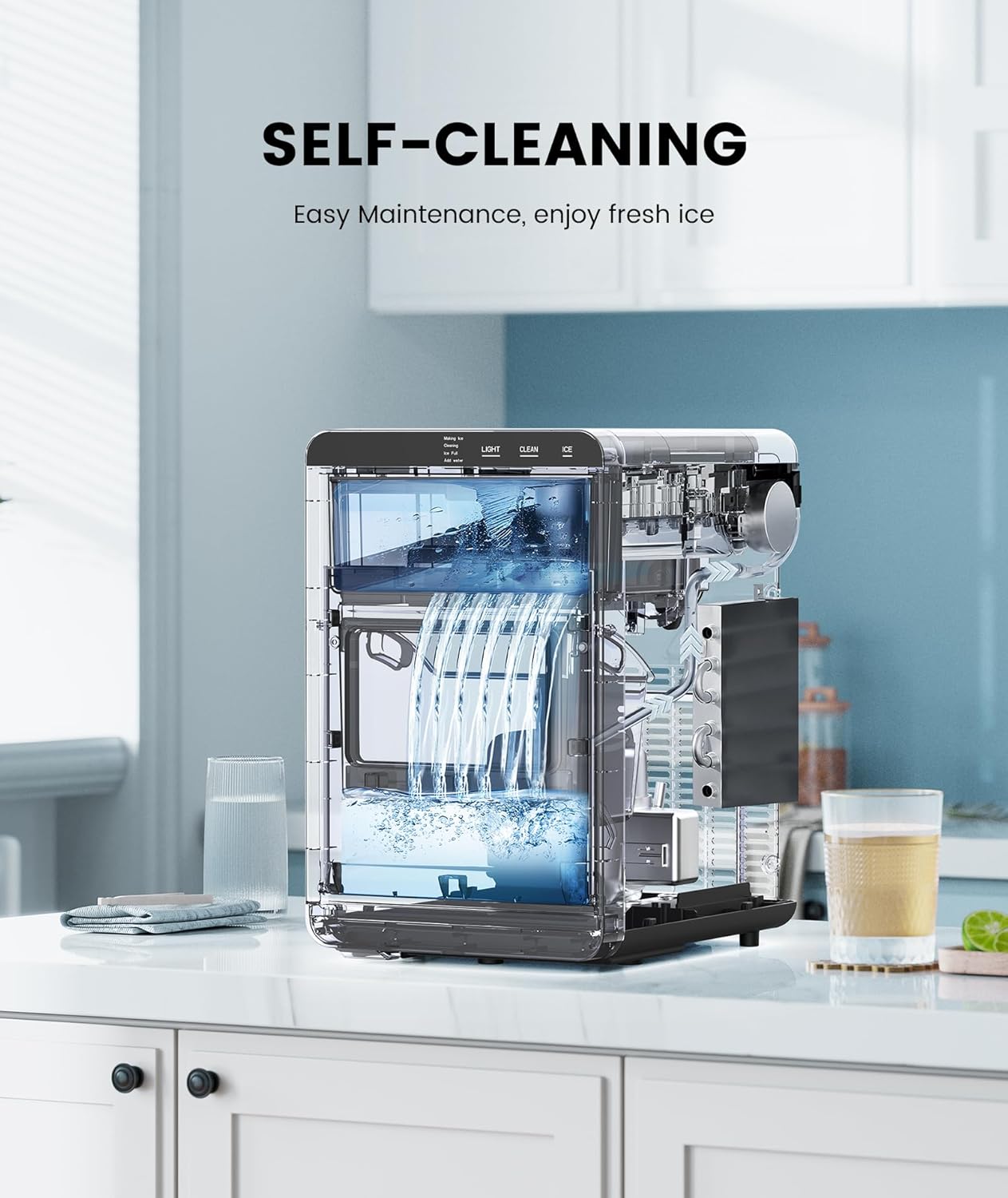 Electactic Ice Maker Countertop, Chewable Pellet Ice Machine with Handle, 44lbs Per Day Portable Ice Makers, Auto-Cleaning Ice Machine with Basket and Scoop for Home/Party/RV/Camping (Silver)