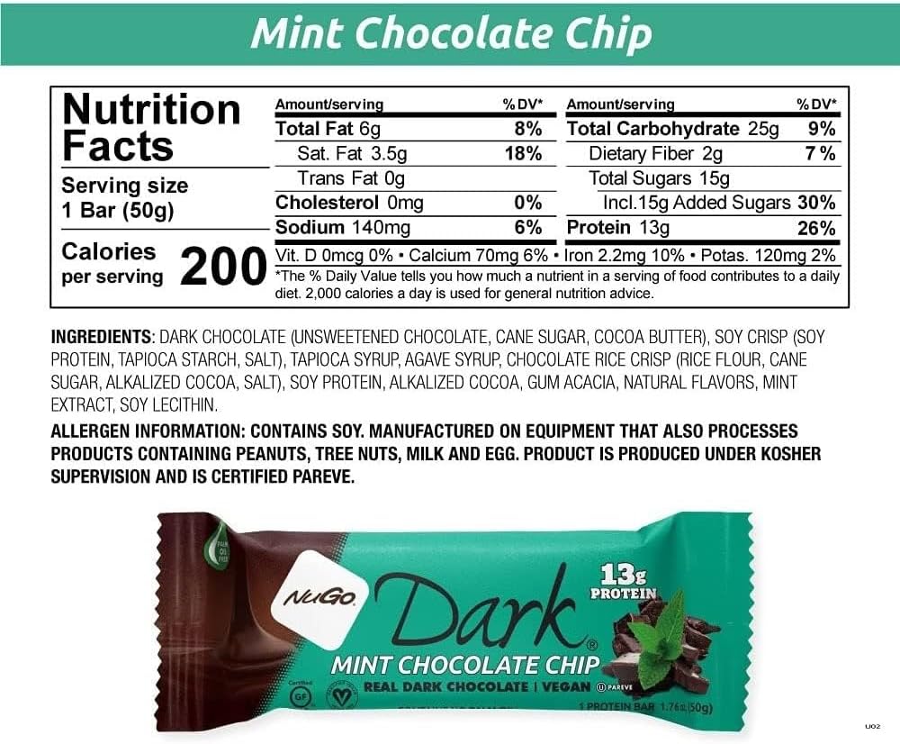 Every NuGo Dark bar is dipped in decadent, real Dark Chocolate. They have the nutrition you need with the flavor you love All of our NuGo Dark bars are gluten free, Vegan, out Kosher Pareve, and have 10g-13g of quality protein.