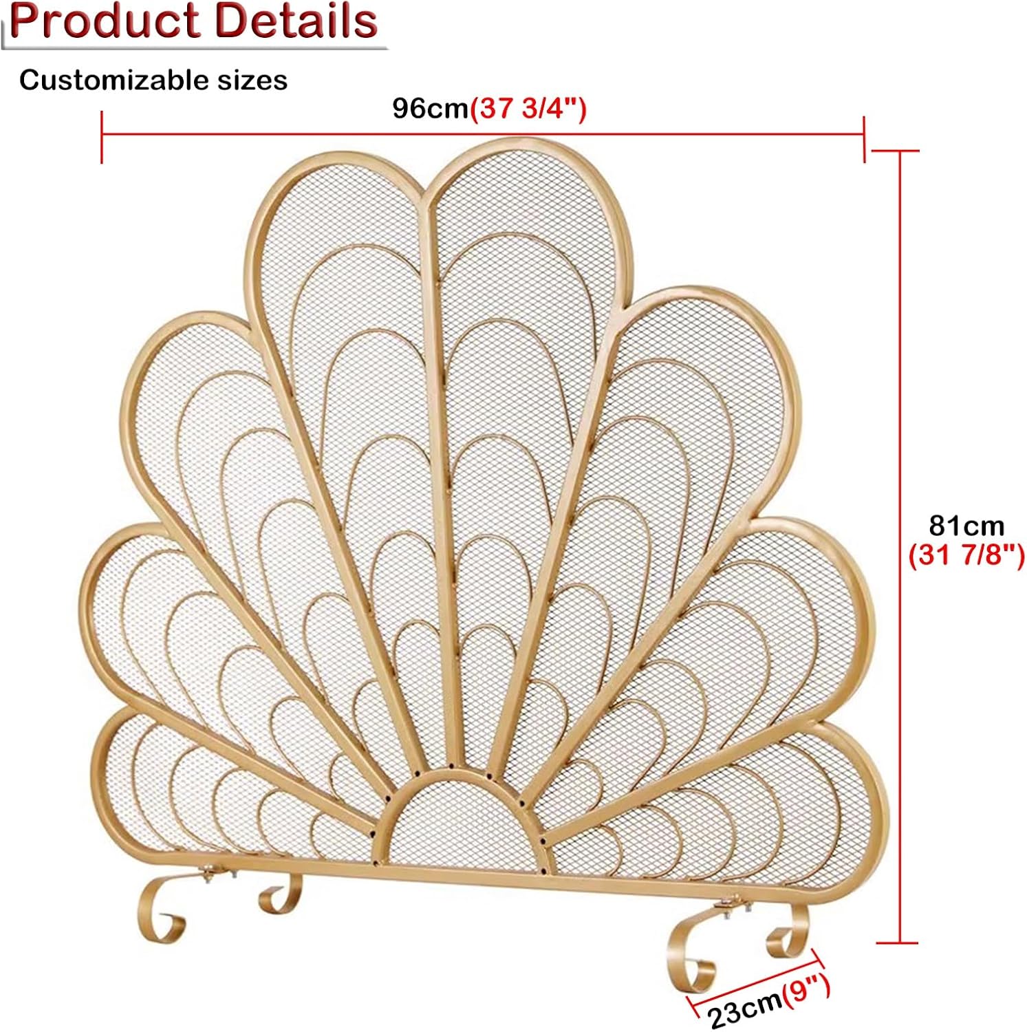 Our modern stylish fireplace fire guards can bring safety and protection to your family, pets and add a distinctive look to your living room fireplace. It is your best choice!Package Contents: 1 x Fireplace CoverSpecification:- Material: Sturdy Iron- Overall Dimensions (Width x Depth x Height): 96cm(37 3/4")x 23cm(9") x 81cm(31 7/8")Features: - Sturdy and durable, optimal stability.- Screen still allows heat to pass through.- Create a safe environment for your family.- interior exterior stove fire pit safety barrier.- Safe screen can stand well and can keep cats, dogs out.- Fire shield for log burners, coal and wood burning firesides.- You can watch the fire through the screen and see what it looks like when it happens.Warm Reminder:- Manual measurement: there will be 1-2 cm error, depending on the actual size.- Due to differences in some monitors and lighting reasons, there may be a slight color difference between pictures and objects.Good Service:- If you have any questions about the product, you can contact us at any time, we provide 24-hour customer service.