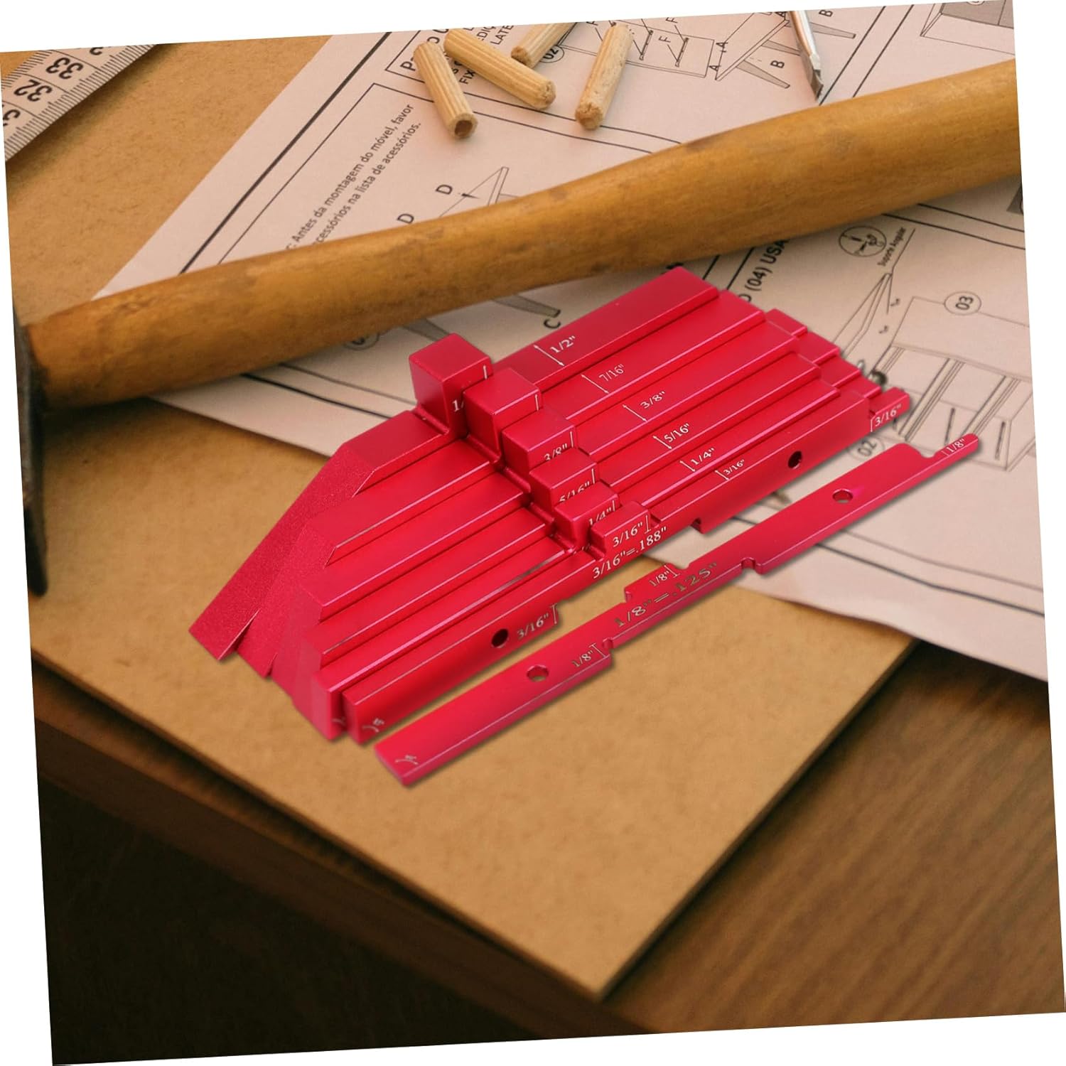 Package List 7 x woodworking measuring blocks Features -Color:Red setup blocks woodworking -Material:Aluminum Alloy wood working tools blocks -Size:15.00X4.00X1.20cm/5.89X1.57X0.47in table saw setup blocks -Engineered for high accuracy, these tools deliver precise measurements, crucial for meticulous woodworking projects woodworking marking gauge. -Versatile adjustable height allows for seamless integration with different table , optimizing your woodworking setup woodworkers edge rule. -Made from aluminum alloy materials, these tools are built to withstand extensive use, offering durability and finder woodworking. -The kit features essential setup blocks and a red gauge, providing a complete for various measurement requirements woodworking protractor. -Simple and intuitive to use, making it an for both hobbyist woodworkers and seasoned professionals router table accessories.Goods Informationwoodworkers edge rule Made from materials, these blocks are built to withstand the rigors of daily use.center finder woodworking The red measuring gauge adds of visibility, ensuring you never miss a mark.aluminum bar stock Elevate your woodworking precision with our adjustable height gauge setup blocks