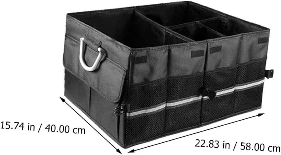 Package List 1 storage box Features - Color: Black. - Material: Oxford Cloth. - Size: About 58.00X40.00X30.00cm/22.79X15.72X11.79inch. -Product Info:Car storage box - Our trunk organizer can be easily folded and stored after finishing using it trunk storage organizer. - It is made of premium oxford cloth material, durable for use. - Fast storage, convenient to store and take out the items you need car trunk organizers. - Detail-oriented design ensures its and gives you more comfortable experience trunk organizer. - Due to its large storage capacity, it keeps everything organized while giving you a clean and tidy car trunk organizer for car.Goods Informationtrunk cargo organizer The large capacity design is convenient for sorting and storing, neat and tidy.trunk organizer for suv This is a must for home travel.car storage organizer trunk Do you still worry about your messy things at your car trunk? Choose our super storage box to make your trunk clean and beautiful