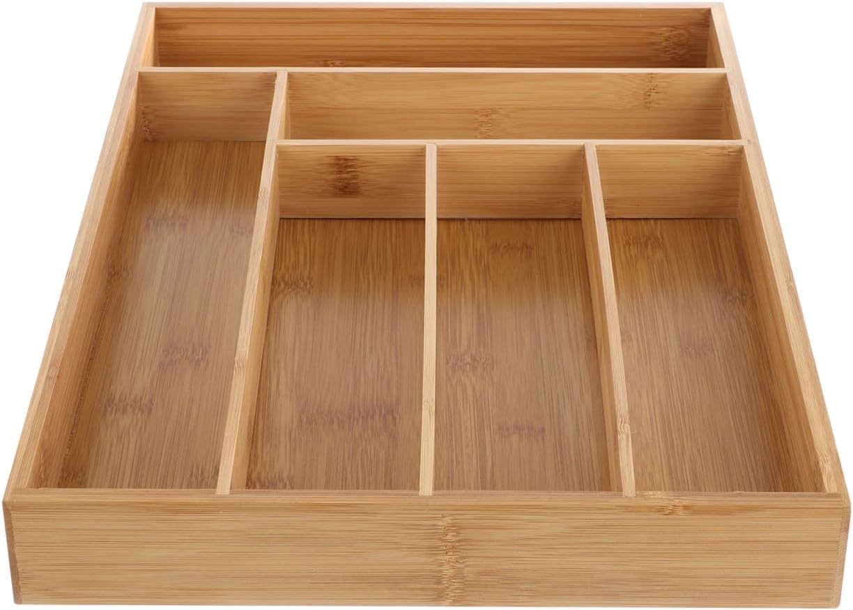 Package List 1 x storage container Characteristics -Material: - 6 compartments: provides a total of 6-compartments for storage Cutlery Divider. -Size: 43.00X31.00X5.20cm/16.90X12.18X2.04in -Product Info:Drawer organizer box - Uses: Perfect for storing kitchen flatware and other utensils and gadgets, cosmetics, sundries and stationery storage bin. -Color:Light Brown - Made of , and to use. - Not only a tableware storage rack; our multifunctional drawer storage box helps to bring organizing functions to any room, including bathrooms, offices, etc kitchen organizer. - , bringing a neat and comfortable experience to life kitchen utensils organizer.Goods Description Cutlery Tray It is also suitable for storing pot and tableware. silverware organizer Do you still upset by the kitchen or bathroom mess? This organizing box will help you to solve the problem.kitchen utensil organizer Elegant style and simple shape design, make it easy to use and move conveniently