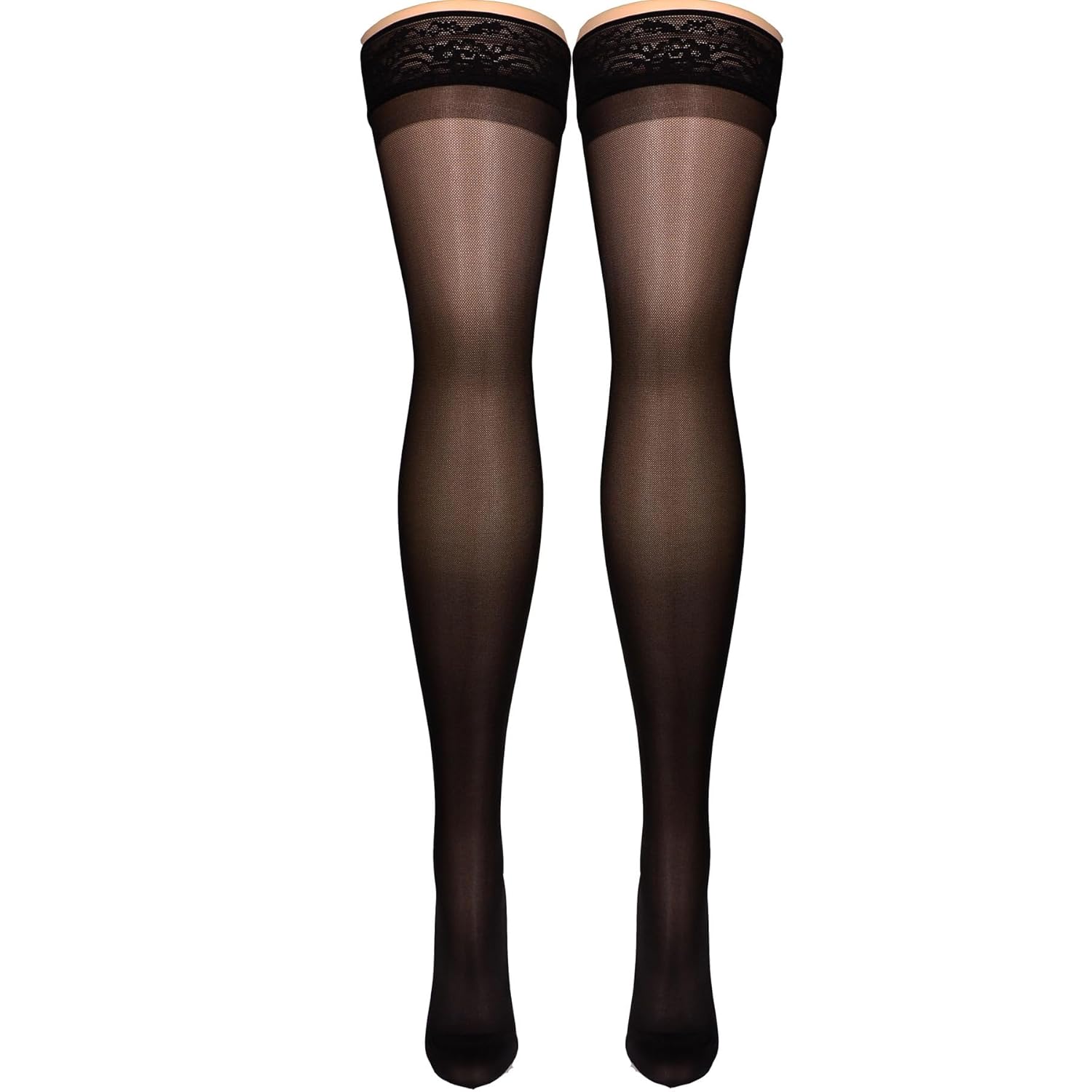 Product Description NuVein 20-30 mmHg "Extra Strength" Sheer Compression Stockings for Women. Made in the USA, NuVein fashionable designer knit hosiery has a 20 denier see-through opacity. The ultimate lifestyle garment resembles classic dress nylons (similar to full length over the knee thigh-high pantyhose) for a traditional fit in boots, heels and evening wear flats or wedges. Constructed with smooth durable completely latex free yarns to enhance comfort and reduce sensitivity. Therapeutic massaging graduated compression helps improve circulation and revitalizes legs with the added benefit of leg shaping and enhanced contouring of thighs, cankles, swollen ankles and feet. NuVein is available in "Mild (8-15 mmHg) Strength, Regular (15-20 mmHg) Strength, Extra (20-30 mmHg) Strength, and Maximum (30-40 mmHg) Strength" compression levels. Compression strength is measured in "mmHg" pressure units, which indicates how tight the garment will feel. Choose 8-15 mmHg (mild strength) for proactive care. Choose 15-20 mmHg (regular strength) to revitalize legs with mild to moderate discomfort, swelling, bulging, or blood clots (fluid buildup post surgery). Travelers who experience "economy class syndrome" or "jet leg" should wear 15-20 mmHg, as should pregnant, expecting, or nursing mothers. Regular 15-20 strength is the common starting point for first time wear. Choose 20-30 mmHg (extra strength) compression for patients suffering from: DVT, Edema, Varicose Veins, Sclerotherapy in Lymphatic System, Laser Vein Ablation, Thrombosis, and EVLT Endovenous Radiology. Choose 30-40 mmHg (maximum strength) when specifically directed by a doctor for severe conditions. Always confirm the correct compression strength prior to purchase. Integrated compression technology promotes recovery, circulation, and healthy legs. Ideal for nurses, those experiencing spider veins or varicose veins, or extended periods of inactivity where blood pooling or tingling (falling asleep in limbs) may occur. Package includes one pair. Manufacturer Contact Information 3960 Rosslyn Dr, Cincinnati, OH 45209