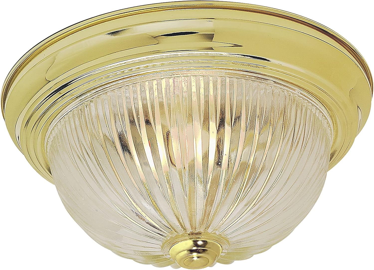 Nuvo Lighting SF76/132 Transitional Two Light Flush Mount in Brass-Polished/Cast finish, Height: 5. 50 inches Width: 13. 25 inches Style: Transitional Light Type: Close-to-Ceiling Safety Rating: cULus and Safety Listing: Damp Number of Lights: 2, Bulb Type: A19, Bulb(s) Included: No