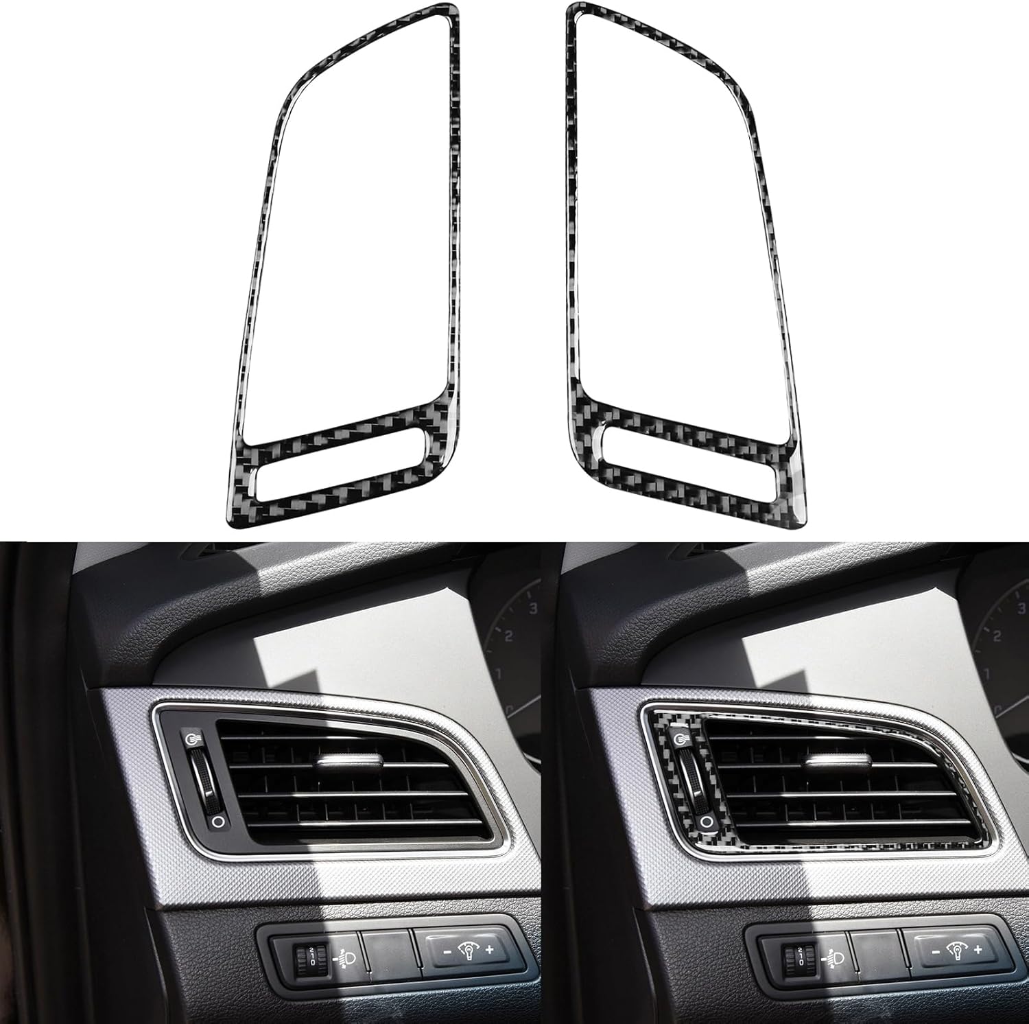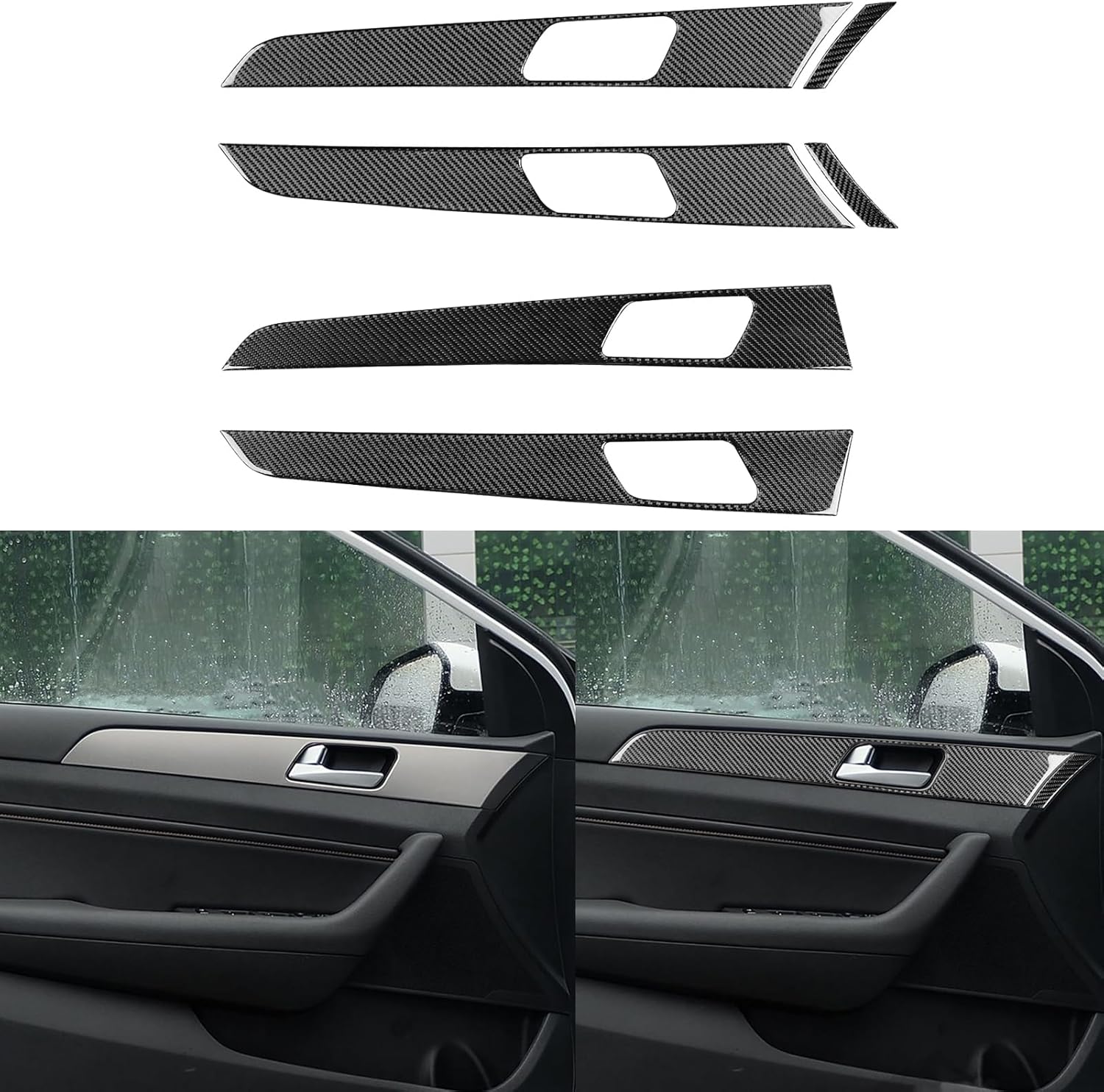 Feature:1. Durable and sturdy, has superior anti‑backlash and wear‑resistant properties, rustproof and colorfast for better decorative effect2. Bring your car a sporty look, a sense of luxury3. Nice interior/exterior decoration, effectively protects original parts for Sonata from scratches and dust4. Easy to maintain and clean, simple installation with the adhesive tape on the back, just peel and stick, no drilling or welding required5. Clearer Texture