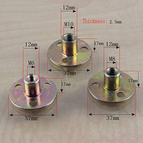 Thicken m6 m8 m10 3/8 5/16 flange 37mm height 17mm T=2.5mm Furniture Nut steel plate round base flange edge bed chair table connector Item Name:furniture flange 3 hole nut Spec: inner thread size X flange dia x height M6 m8 m10 x 37 x 17 mm 3/8 , 5/16 inch x 37 x 17 mm Using for wood plate connect,and easy to disassembly Features: this is the thickne type thickness is about 2.5mm if need thinner type thickness 1.0 -1.4mm pls contact us Using for furniture connecting. Item specifics:Is customized: YesDiy supplies: WoodworkingModel number: plate nut furniture tableProduct name: furniture table plate nut