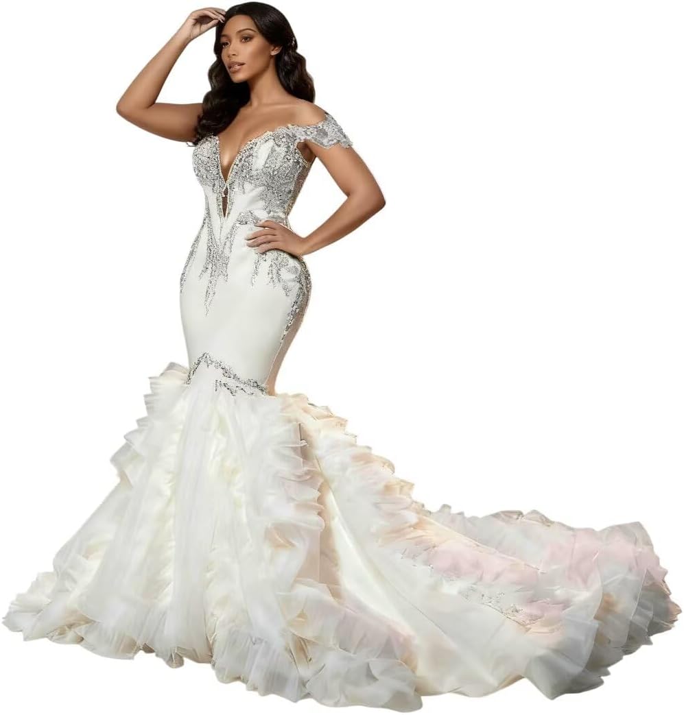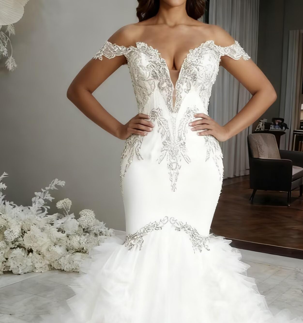 | Embellishment Feature | Mermaid Beaded Rhinestone Wedding Dress with Train |