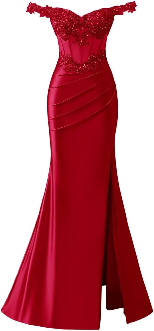 Welcome to XsqmbwbWe wish you to be able to choose a beautiful dress that suits you.We will provide you with bridesmaid dress,evening dress,prom dress,homecoming dress,cocktail dress,wedding dress.the business philosophy of our store is to provide customers with satisfactory products and services,to become customers' friends,not just for sellersDress DetailFabric:Satin Feature:Off The Shoulder Satin Prom Dress for WomenSweetheart Pleated Long Party Dress with TrainLong Sequin Applique Mermaid Formal Evening GownLace Up ClosureOff the shoulder,sweetheart,v neck,sequin applique,pleated,built in bra,side slit,mermaid,long formal evening party gownHow to choose size:Please refer to the size chart on the left side of the product page to select a size,pay attention! ! ! if you are not sure which size to choose,you can choose One Size,One Size in our store represents customized size,if you need to customize, please send us your measurement details as list:1.Full Bust _____ inch or ___ cm2.Waist _____ inch or ___ cm3.Hips _____ inch or ___ cm4.Shoulder to Shoulder ____ inch or ___ cm5.Hollow to floor (Shoulder to Feet without shoes) ___ inch or ___ cm6.The height of heel shoes: _____inch or ___ cm7.The date you need the dress:____How to communicate:You can send an email through Amazon,we will reply you within 24 hours after receiving your email,any information related to the product can send a message to ask usNotes:1.Due to the difference of the display, please allow a slight color difference between the received dress and the picture2.Please allow 1-3cm differs due to manual measurement.3.All reasonable reasons for return will be accepted, and returned dress should be complete, tidy, and undamaged, and will not affect secondary sales