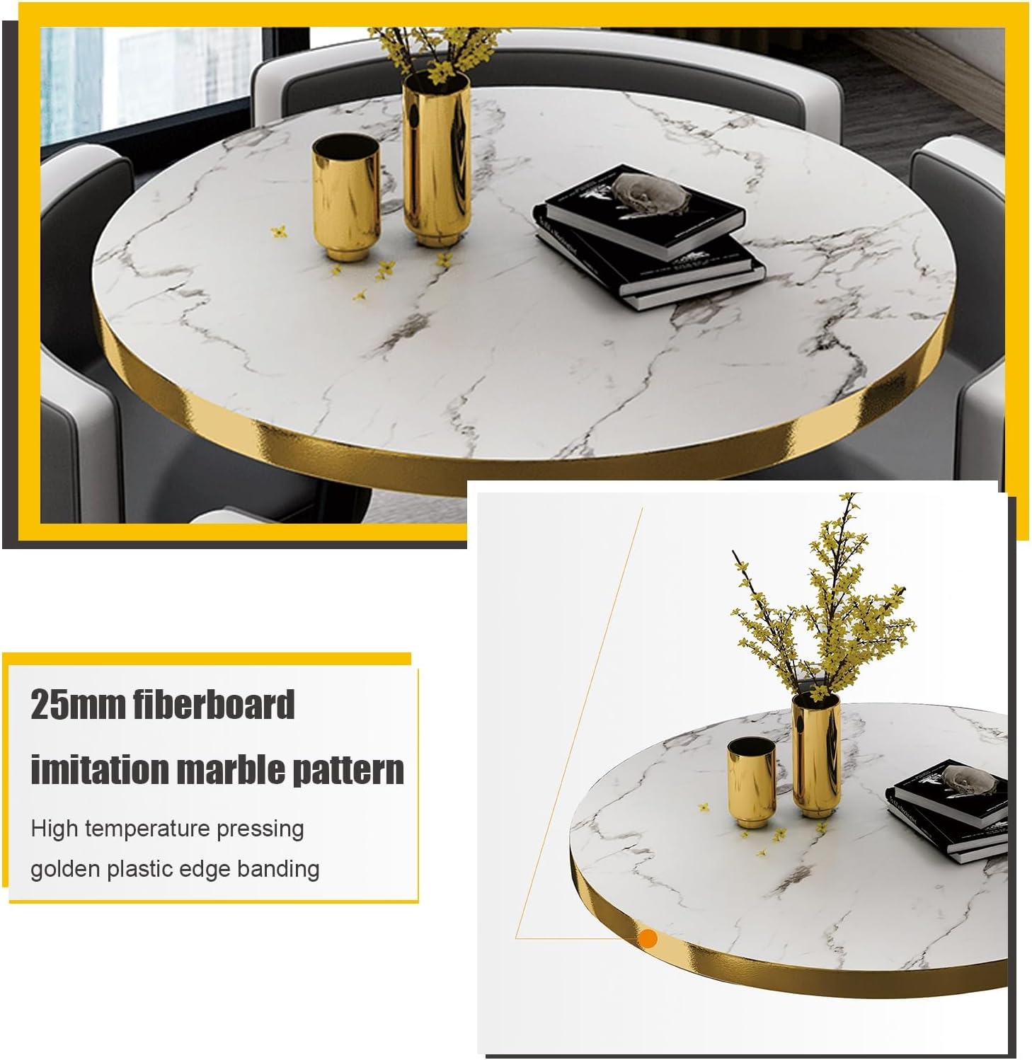 Fascinating Business Reception Negotiation - Small Conference Desk & Chair Set - Meeting Room Table and Chair Set will complement any Office or home décor.Coffee Shop Leisure Table and Chair Combination,at Office Reception Room, this Office Table and Chair Set can also be used as a small dining table in the kitchen or as a small conference table in the office.This table and chair set also can be placed in your beauty shop, nail salon shop, beverage shop, hotel lobby or Variety Business shops.Product Name: Table and chair combinationFeatures: Simple,generous,space savingColor: Multiple colors availableStyle: simple and modernBracket structure Material:MetallTable Shape: RoundDesk top Material:E1 high density boardTable top diameter: 80cm/31inch,Table top thickness: 25mm/1inchTable height:75cm/29.5inchTable loading :300KGChairs material:PU leather,Total chair height:73cm/28.7inch,Seat height:40cm/15.7inch,Seat depth: 36cm/14inchSeat loading: 100KGApplicable number: 4 peoplePacking method: assemblyPacking list:1*table,4*chairs