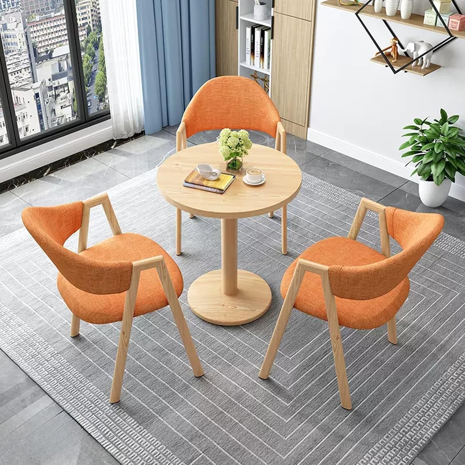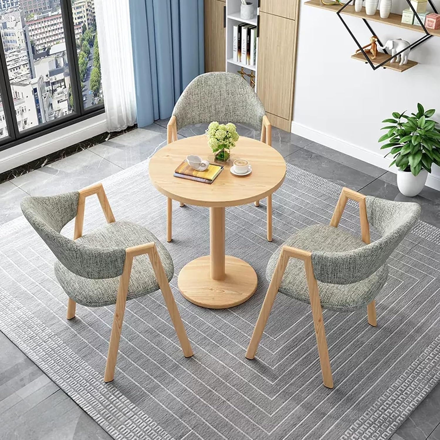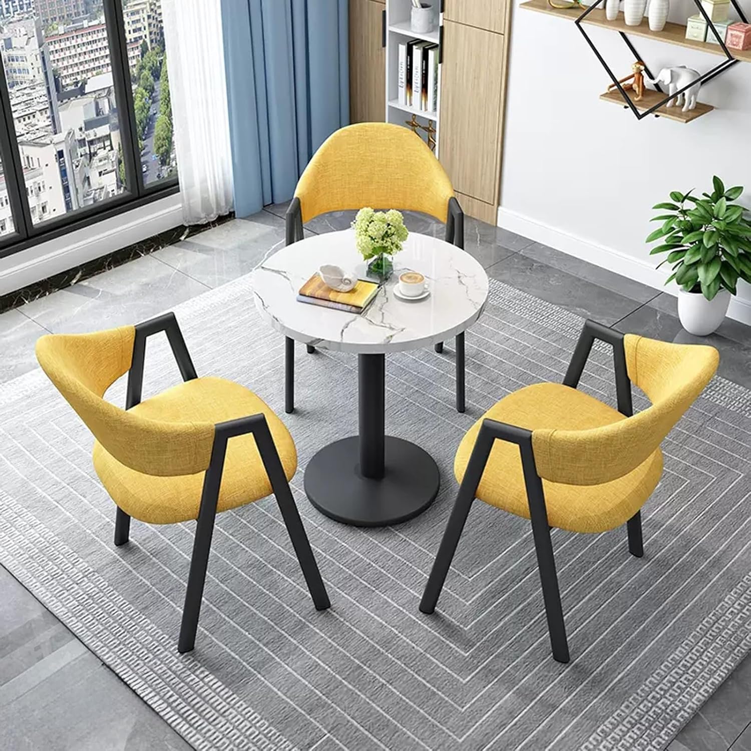▶ Coffee Shop Leisure Table and Chair Combination,at Office Reception Room, this Office Table and Chair Set can also be used as a small dining table in the kitchen or as a small conference table in the office.▶ This kitchen dining table and chair set also can be placed in your beauty shop, nail salon shop, beverage shop, hotel lobby or Variety Business shops.▶ Product Parameters:Product Name: Table and chair combinationFeatures: Simple,generous,space savingColor: Green , Blue, Dark Gray, Light Gray, Yellow, Line Gray , Orange, Khaki , BrownStyle: simple and modernBracket structure Material: MetalTable Shape: RoundDesk top Material: Wood-based panelTable top diameter: 23.6"/60cmTable height: 75cm/29.5inchTable top thickness: 25mmChairs material: Cotton and linenTotal chair height: 78cm/30.7inApplicable number: 3 peoplePacking method: assemblyPacking list:1*table,3*chairs▶ Warm Tips:1. Size Description: The product is completely measured by hand and may have an error of 1-3 cm. Please refer to the actual items received.2. Picture description: The product is real. Due to problems with light, angle, display, etc., there may be slight chromatic aberration, please forgive me.