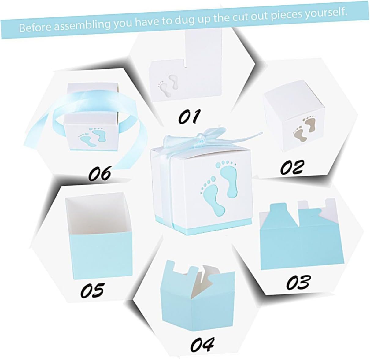 List Candy Box Characteristics - Size: 6x6x6cm wedding accessories. - Material: Paper chocolate candy box. - Color: Sky-blue. - Hollowed little feet shape, and with ribbon, very beautiful and elegant. Foldable, light, floral and delicate wedding favor boxes. - Fill with favorite candy, chocolate, jewelry to make a for your guests and friends party favor boxes. - Suitable for packaging small , crafts, jewelry, chocolate, candy, etc candy wrap box. - Gorgeous favor boxes for wedding or party candy box. - Delicate structure and it is easy to assemble without using a scissor or glue.Goods Descriptionwedding accessories Sending it to your family or friend, decorating your party or ceremony with them and they are also great little boxes to hold your Valentine's day or birthday presents.wedding favor boxes These delicate box can be used for wrapping candy or goodies with small size.party favor boxes Spread your and love to your lover, your family or your friends