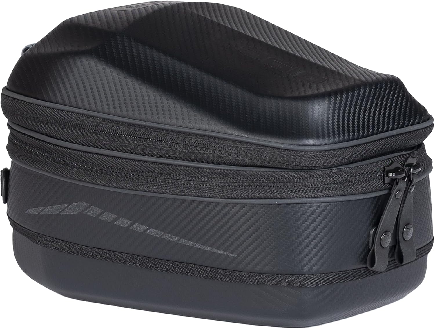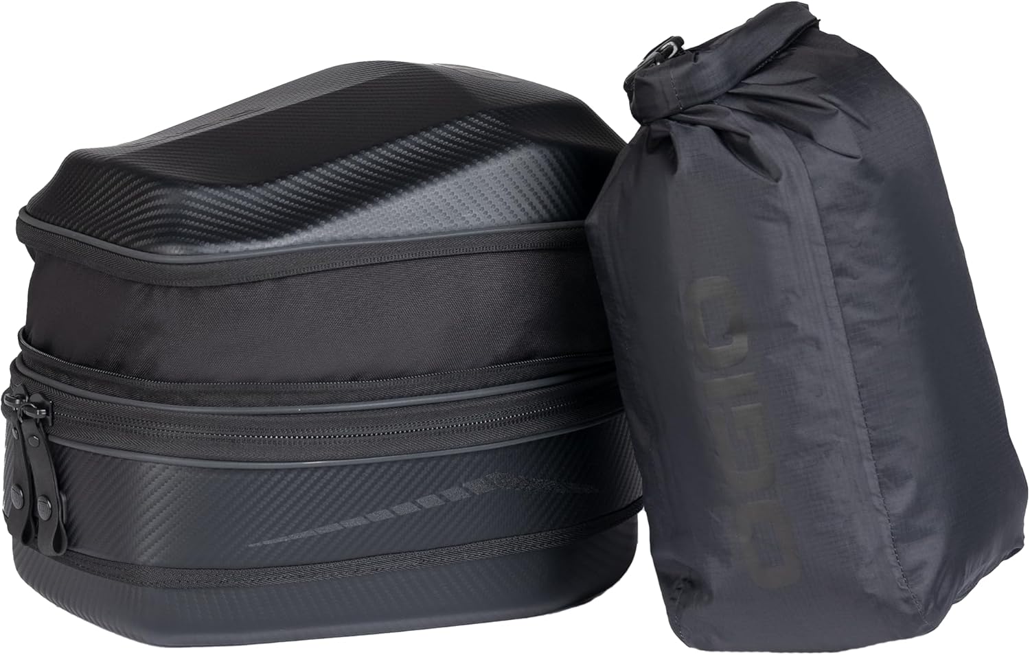 The TB1 is a 14L Tail Bag that expands to 18L for added volume with quick release RAM EZY-Mount harness. The Molded EVA with Carbon Fiber PU film provides structure and support while providing water resistance from the elements. The unique design is low-profile and provides an internal storage pocket, waterproof rolltop liner and carry strap. The RAM® EZY-Mount™ partnership with OGIO created a patent pending system that makes it easy to install, easy to use and easy to take-off when the ride is over. Features: Molded EVA Top/Bottom will not deform from wind shear and outer layer of PU film provides a durable water-resistant barrier, Quick release pull strap for fast removal, Reflective piping and side graphics for increased visibility in low light conditions, 3” expansion joint increases storage volume, Removable Velcro® backed storage pouch, Quick access grab handle and carry strap make egress from bike easier, Internal waterproof rolltop liner for protecting electronics and keeping gear dry in extreme weather conditions, OGIO Tail Bag Harness included and Rain cover features a shock cord with cord lock for tight fit. Specifications: 14L = 11.5” L x 8.6” W x 8.5” H / CM 29.2 L x 22 W x 21.6 H, 840 cu in./13.7L, 18L Expanded = 11.5” L x 8.6” W x 11.5” H , CM 29.2 L x 22 W x 29.2 H + 1137 cu in./18.5L, 2.3 lbs/1.05 Kg Material: 600D poly, carbon weave EVA molded top and base with 600D poly expansion joint. OGIO RAM EZY-Mount INCLUDED. OGIO universal mounting system has 360-degree swivel cams that allow the harness to fit any angle needed for your bike. The EVA molded mount is structured to provide a stable platform for an OGIO RAM EZT-Mount to lock bag in place providing secure storage on your ride. Features: RAM EZY-Mount mounting system with OGIO ring included allows for stable secure plateform to mount OGIO Tank or Tail Bag. 2mm embossed SBR Neoprene protects the bottom of the harness from rubbing or scratching your bike. 360-degree swivel cams allow straps to be cinched at the correct angle for your bike and cinch loop ends make strapping to your frame or rack simple. Specifications: 10.75" L x 9.0" W x 1.15" H. CM 27.3L x 22.9W x 3.0H. 1.1 LBS / 0.5kg.