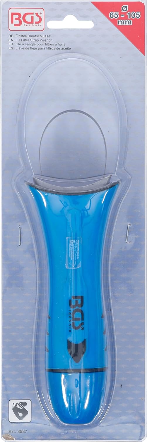 Features: To loosen tight oil filters Especially suitable for tight spaces The steel band is tensioned by turning the clamping screw at the end of the handle Profiled steel band prevents slipping on the files