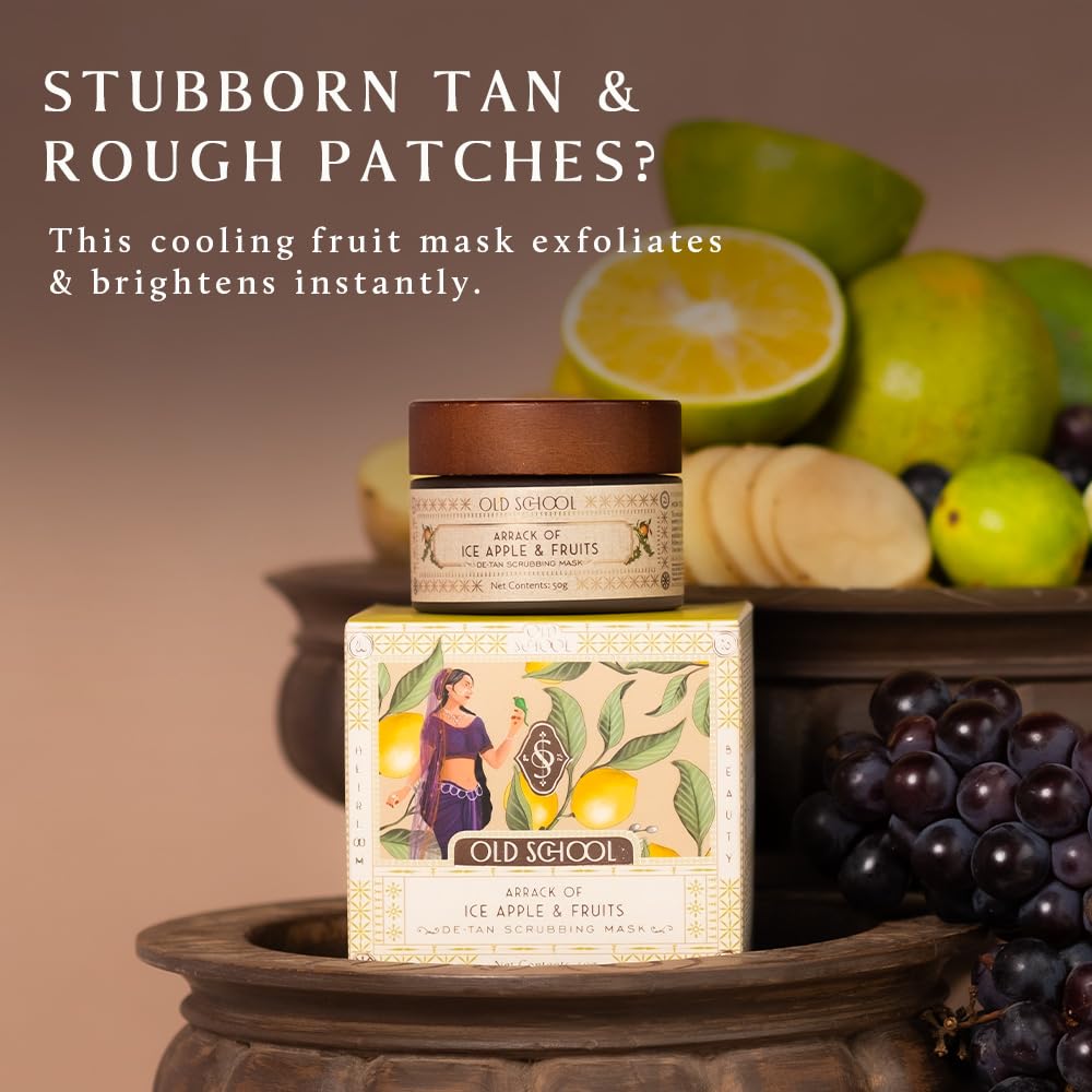 COOLING ICE APPLE: Infused with ice apple, known for its rich electrolytes and cooling properties, this de-tan face mask soothes and revitalizes sun-damaged skin, offering a refreshing experience.