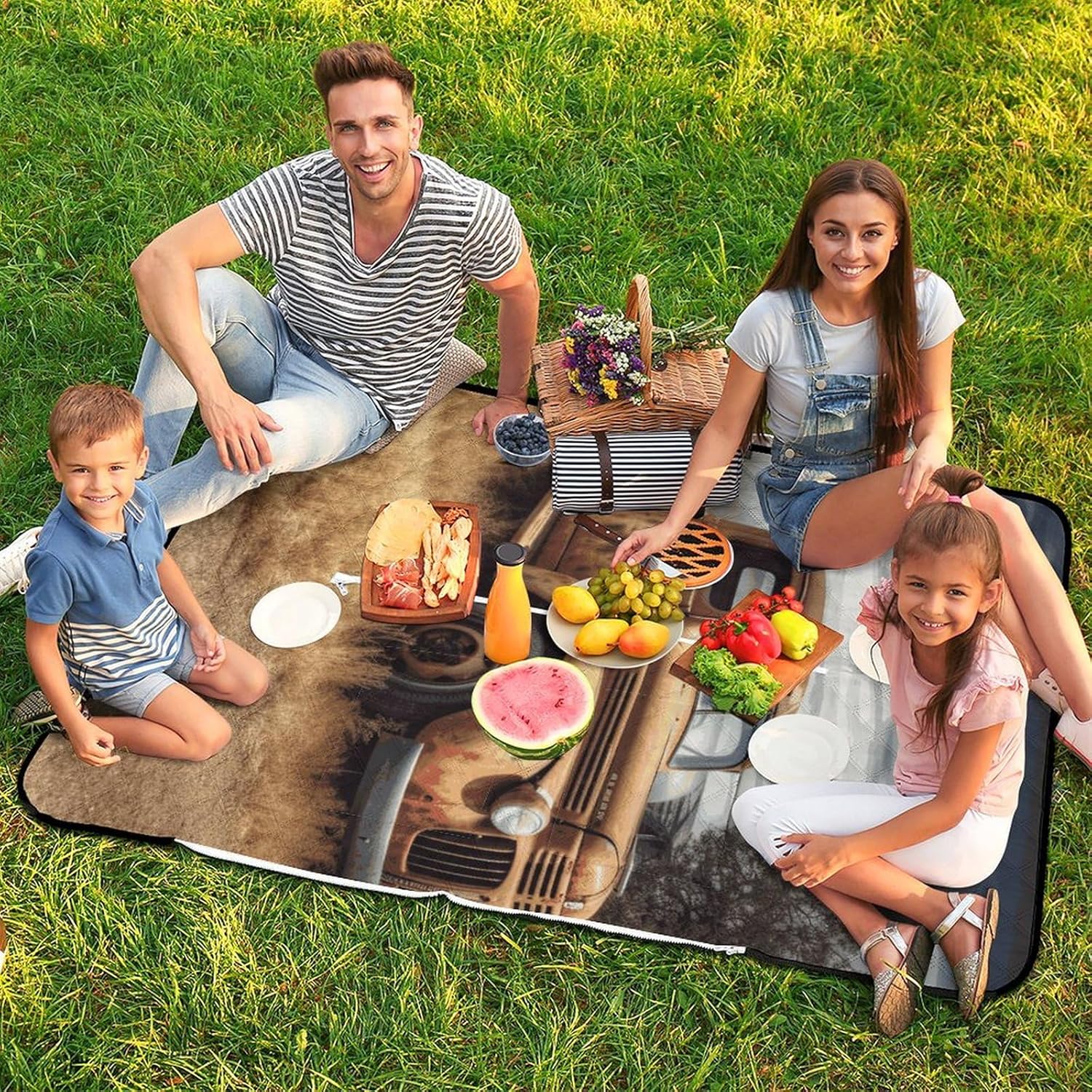 Elevate Your Outdoor Experience with the Versatile Picnic BlanketCollapsible Picnic Mat Picnic Essentials Convertible Tote Bag Portable Rug for Picnics Beach Essentials Camping Pad Cute Picnic Blanket Bag Foldable Travel Mat Large Family Picnic Blanket Outdoor Picnic MatsSuperior Protection and ComfortForget worrying about wet grass or prickly sand. Our blanket features a smart 3-layer construction. The top layer is soft to the touch, while the middle padding provides just the right amount of cushioning against hard ground. The bottom layer, made from durable 210D Oxford cloth, is completely waterproof and acts as a barrier against moisture and dirt, ensuring you stay clean and dry.Designed for the Modern ExplorerWe understand that space is precious when you're on the move. That's why our blanket features an ingenious foldable design. In seconds, it transforms from a full-size mat into a compact carry bag with a handle. This makes it incredibly easy to transport and store. But the innovation doesn't stop there; the carry bag itself is designed to be used as a sturdy shopping tote, making this blanket a true 2-in-1 essential for eco-conscious shoppers.Choose Your Perfect Size:59 x 40 inches / 150 x 100cm: Ideal for couples or solo use.59 x 59 inches / 150 x 150cm: Perfect for a small family or small group of friends.78.8 x 78.8 inches / 200 x 200cm: Our large size, perfect for family gatherings and group outings.Whether you're planning a beach vacation, a camping trip, a hike, or a simple day at the park, this cute picnic blanket is your reliable partner for comfort and convenience. Pack it, carry it, and enjoy the outdoors without compromise.