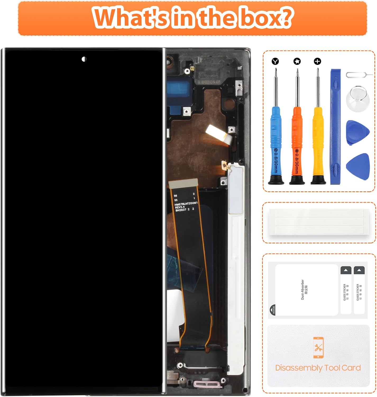 Restore Your For Samsung Note 20 Ultra to Like-New Condition!Is your For Samsung Note 20 Ultra suffering from a cracked screen, display issues, or touch problems? The Arbilato Screen Replacement Kit is here to help! Designed specifically for the Note 20 Ultra 5G, this all-in-one kit includes everything you need to replace your screen quickly and easily.Why Choose Arbilato?Premium Quality: Our OLED screen delivers stunning visuals with true-to-life colors and sharp details, matching the performance of the original screen.Complete Kit: Save time and money with a kit that includes the screen, frame, adhesive and tools—no need to purchase additional parts.Easy to Install: Even if you're not tech-savvy, our step-by-step guide and included tools make installation a breeze.Perfect Compatibility: Designed specifically for the Note 20 Ultra 5G (models N986U, N986N, N9860, N986W), ensuring a seamless fit and flawless performance.What’s in the Box?6.9-inch OLED ScreenPrecision FrameAdhesive StripsInstallation Tools (Screwdrivers, Pry Tools, etc.)Upgrade Your Note 20 Ultra Today!Don’t let a damaged screen ruin your experience. With the Arbilato Screen Replacement Kit, you can restore your phone’s display to its original glory—quickly, easily, and affordably. Order now and enjoy a like-new phone in no time!