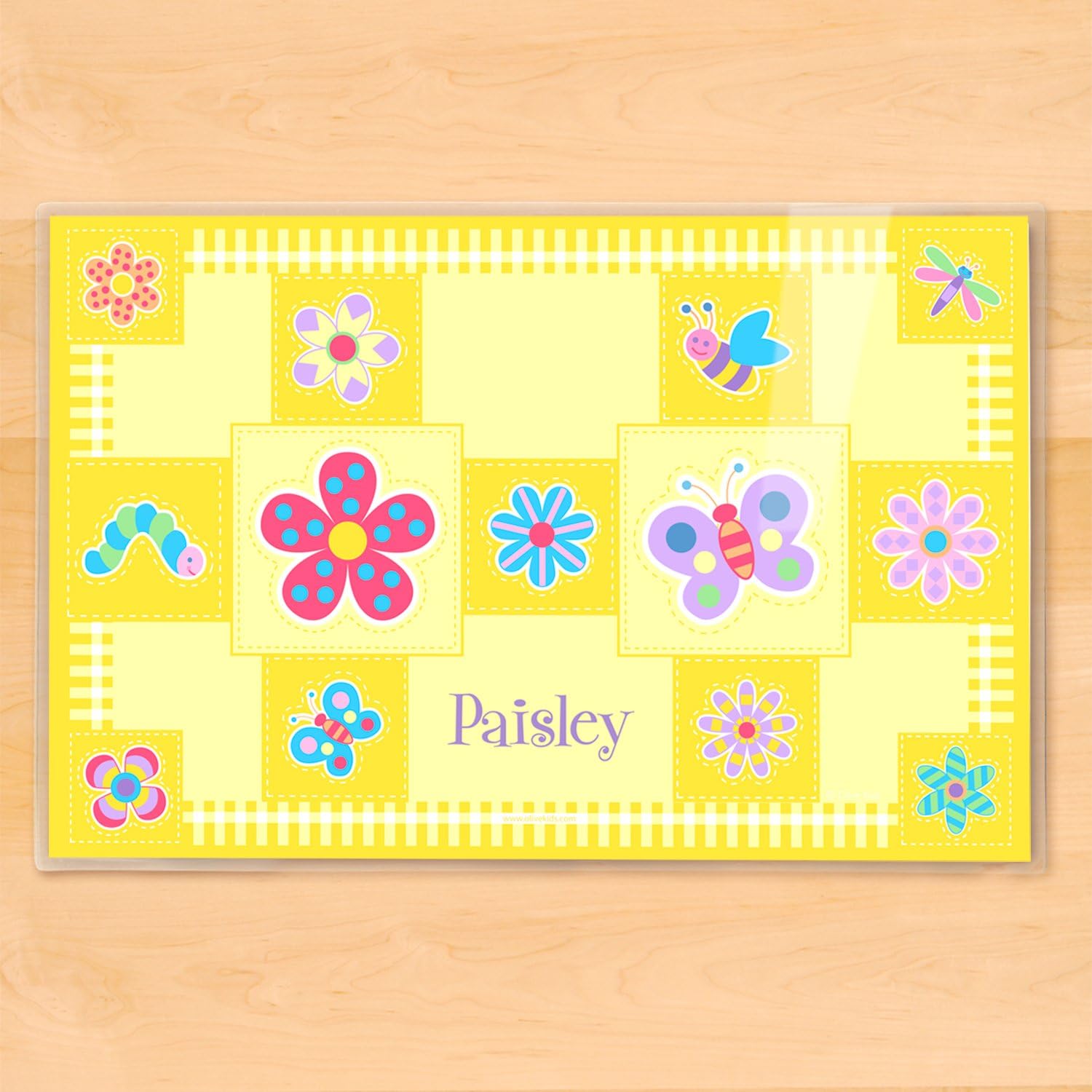Little girls will love this bouquet of 3 floral themed placemats. Set includes Flowerland, Paisley, & Butterfly Garden designs. One name per set.