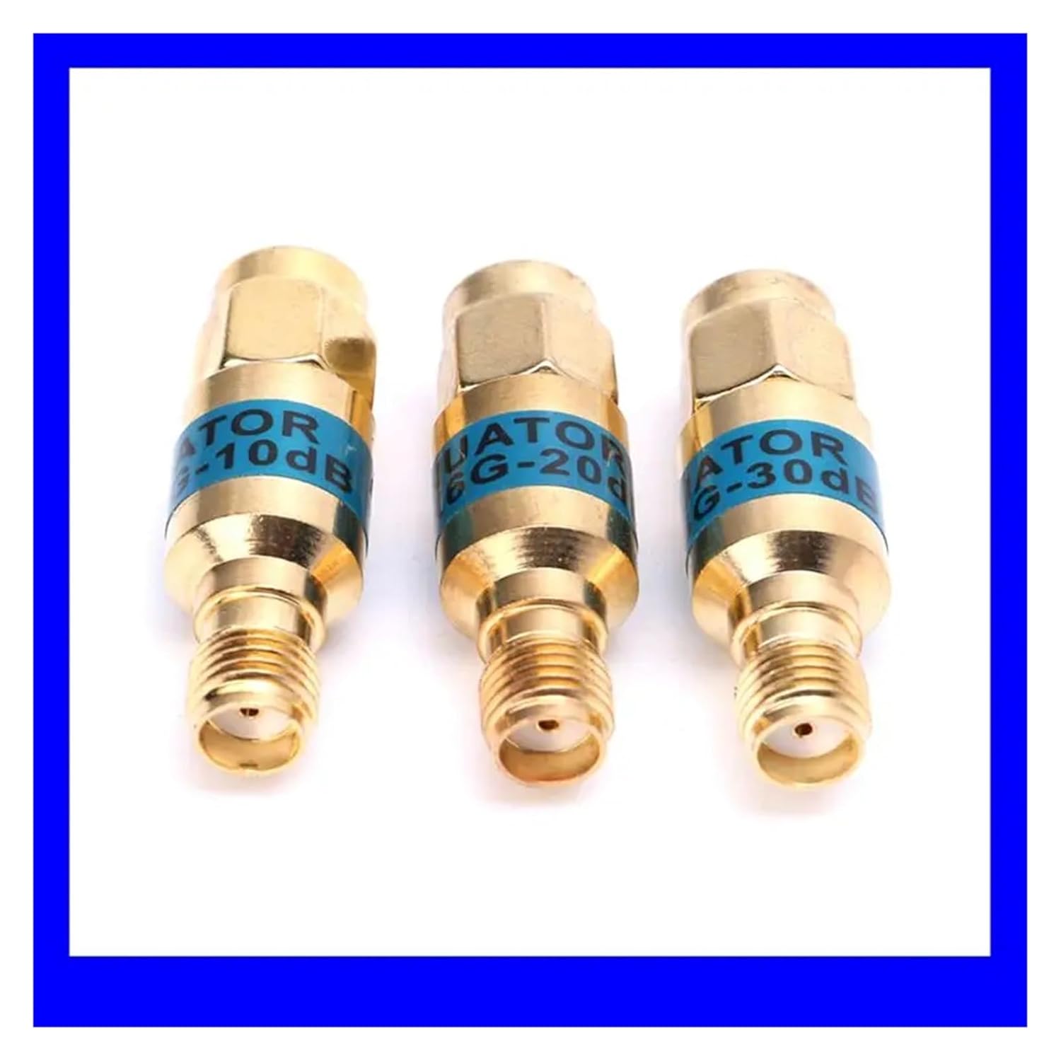 Radio Frequency AttenuatorsSpecification:1. Power: 2 watts2. Frequency range: DC to 6.0 GHz3. Standing Wave Ratio (SWR): 1.204. Connector type: SMA male/SMA female5. Impedance: 50Ω6. Attenuation: 1-30dB selectable, 1-10dB±0.5dB, 15-30dB±1dB7. Dimensions: 30mm * 9mm8. Operating temperature: -55℃~125℃