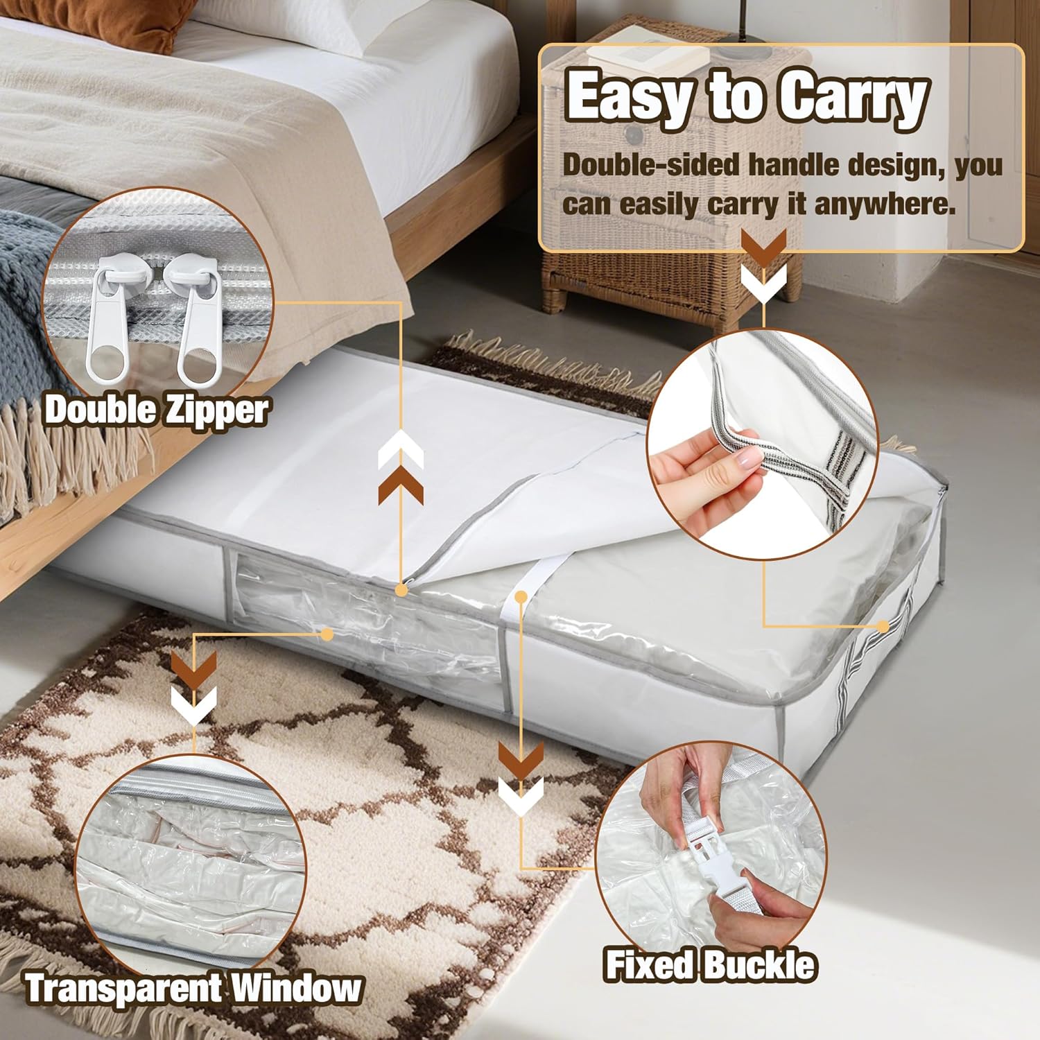 One Pack Underbed Size Clothes Storage Tote, 70L Large Capacity Organizer with Vacuum Storage Bag for Comforters, Blankets and Bedding
