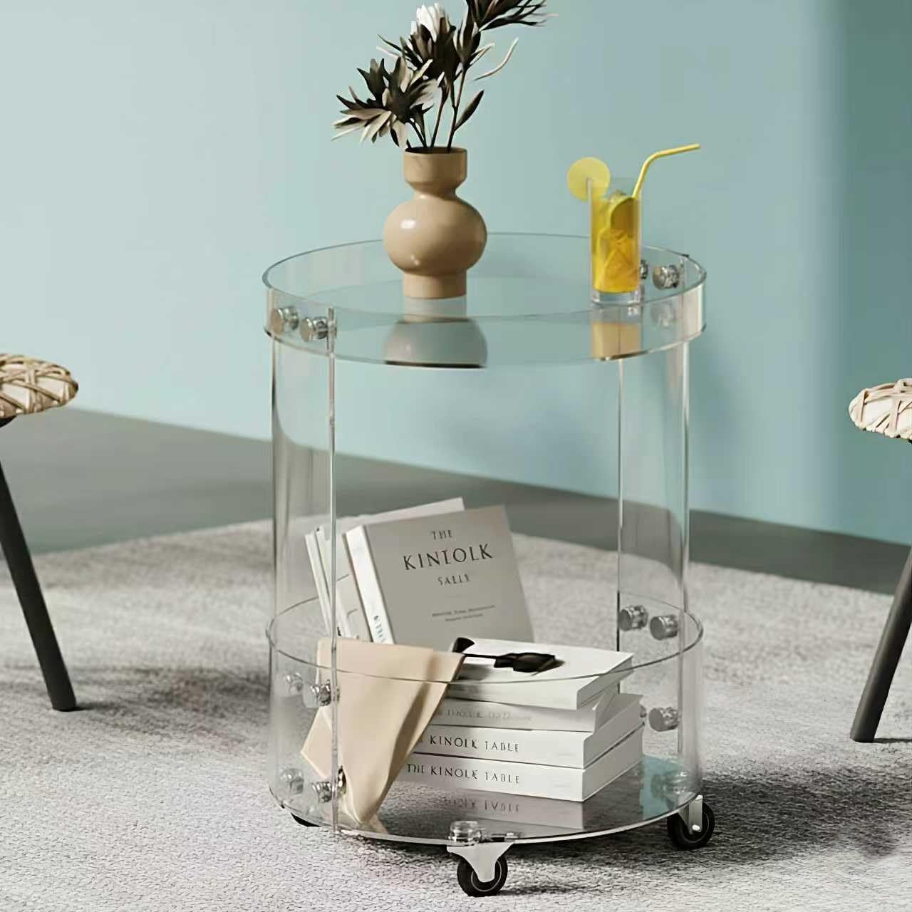 Round Acylic Serving Cart for Home,Acylic Side Table on Wheels,Rolling Beverage Storage Shelf for Kitchen Dining Room