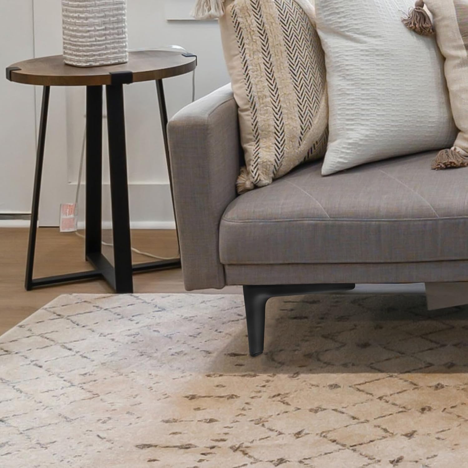 Package Include 4 x Furniture Legs Characteristics -Color:Black -Size:15.00X15.00X12.00cm/5.89X5.89X4.72in -Product Info:Furniture legs -Material:iron - Fine workmanship and simple appearance for its popularity and practicality cupboard feet. - Suitable for furniture legs, such as sofa, cabinet, couch, coffee table, office furniture, etc metal table foot. - The table legs not only increase the storage space, but are also easy to clean, and the sweeping robot is easier to pass cabinet leg. - The main body structure is safe and stable, with high load-bearing capacity sofa leg replacements. - Made from iron materials, has higher toughness, durable and useful, not easy to deform or break.Goods Descriptionfurniture metal feet Simple but practical design, appearance, and easy to use, it can help to give your furniture a new look.leg for will have everything ready to get the down.furniture feet These furniture legs are designed to provide support for a variety of furniture pieces, including sofas, tables, cabinets, desks, and bed frames